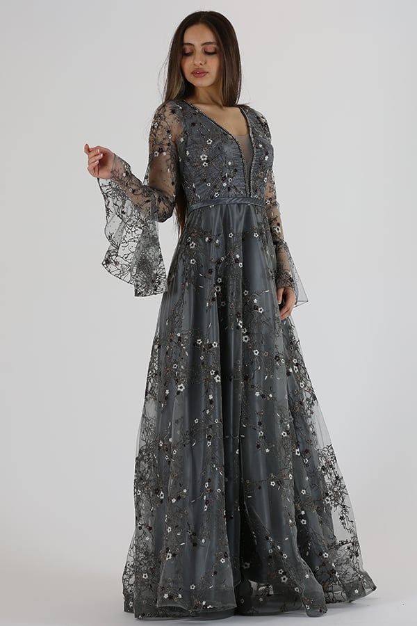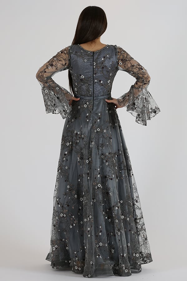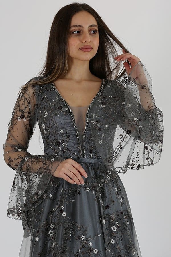 فستان سهرة كلاسيكي من خامة التل كمبيوتر قطعة راقية وأنيقة تمزج بين الطابع الكلاسيكي والتفاصيل الرومانسيةيتميز الفستان بتصميم كلاسيكي أنيق يصل إلى منطقة الأرض، مما يضفي لمسة من الرقي والأناقة على إطلالتك. يتمتع الفستان بأكمام فرنسية، وهي أكمام تنسدل بأناقة وتنتهي عند المعصم بتفاصيل رومانسية تضفي لمسة أنثوية وجميلة.