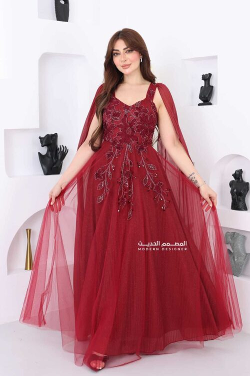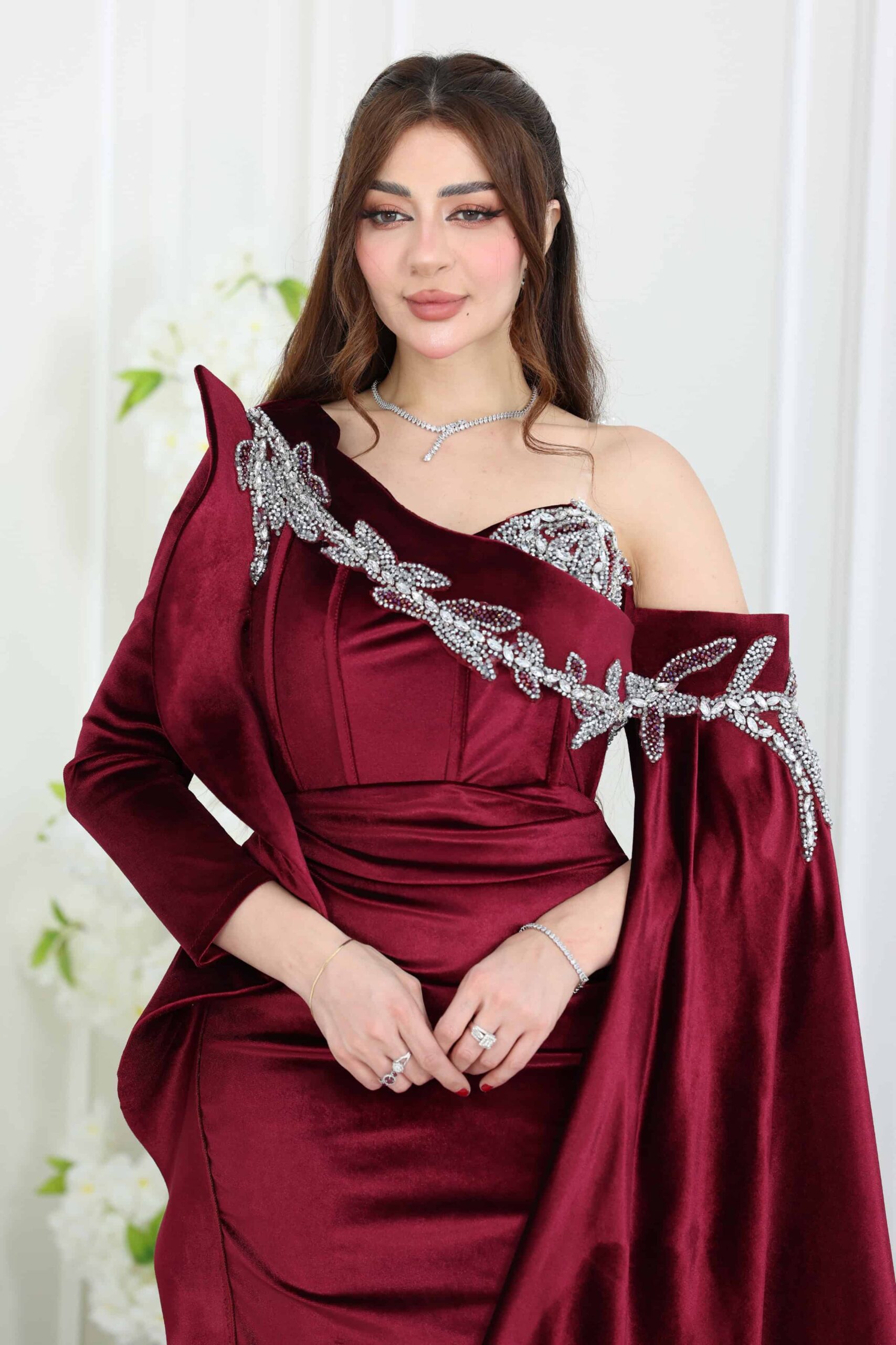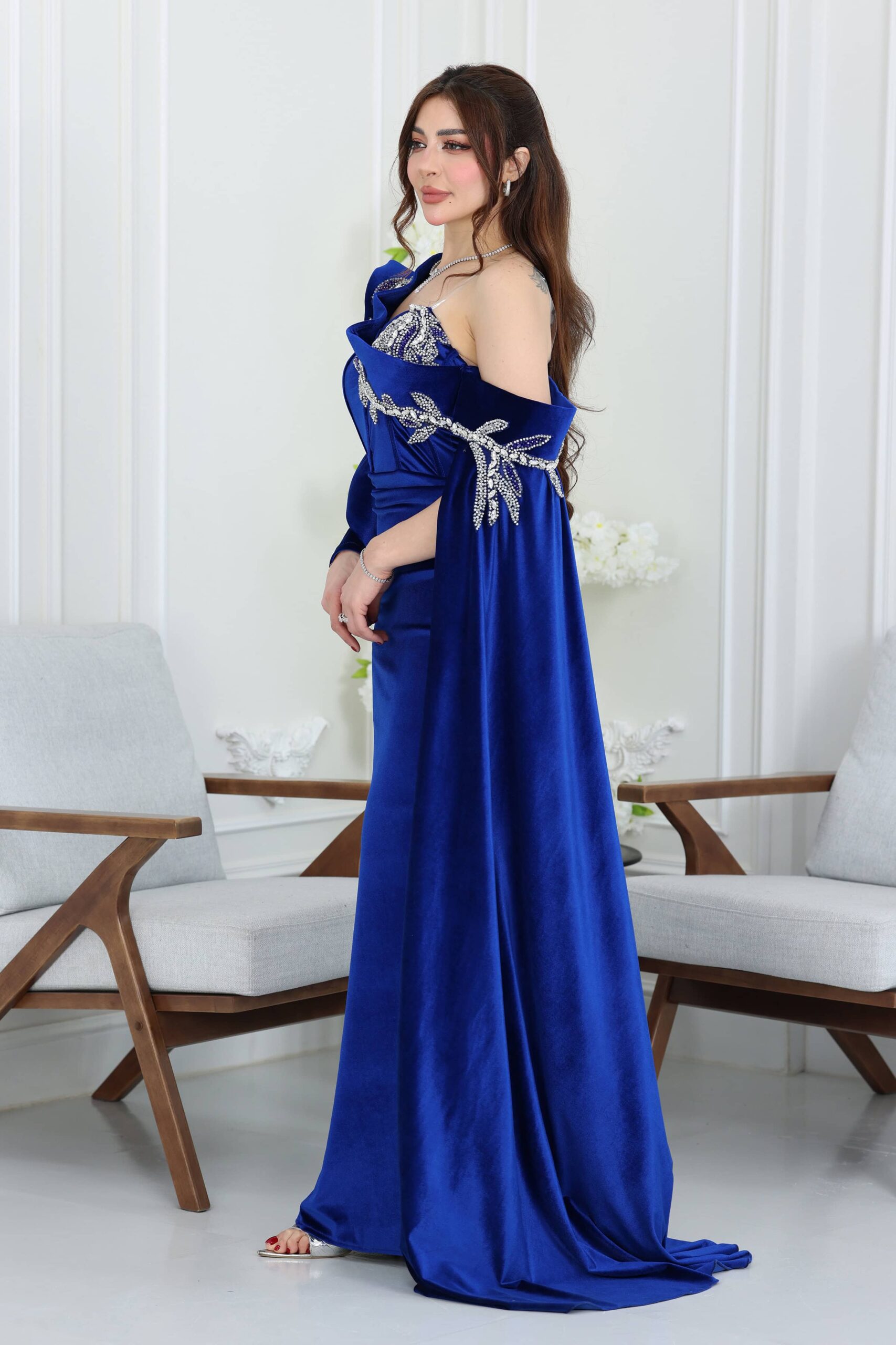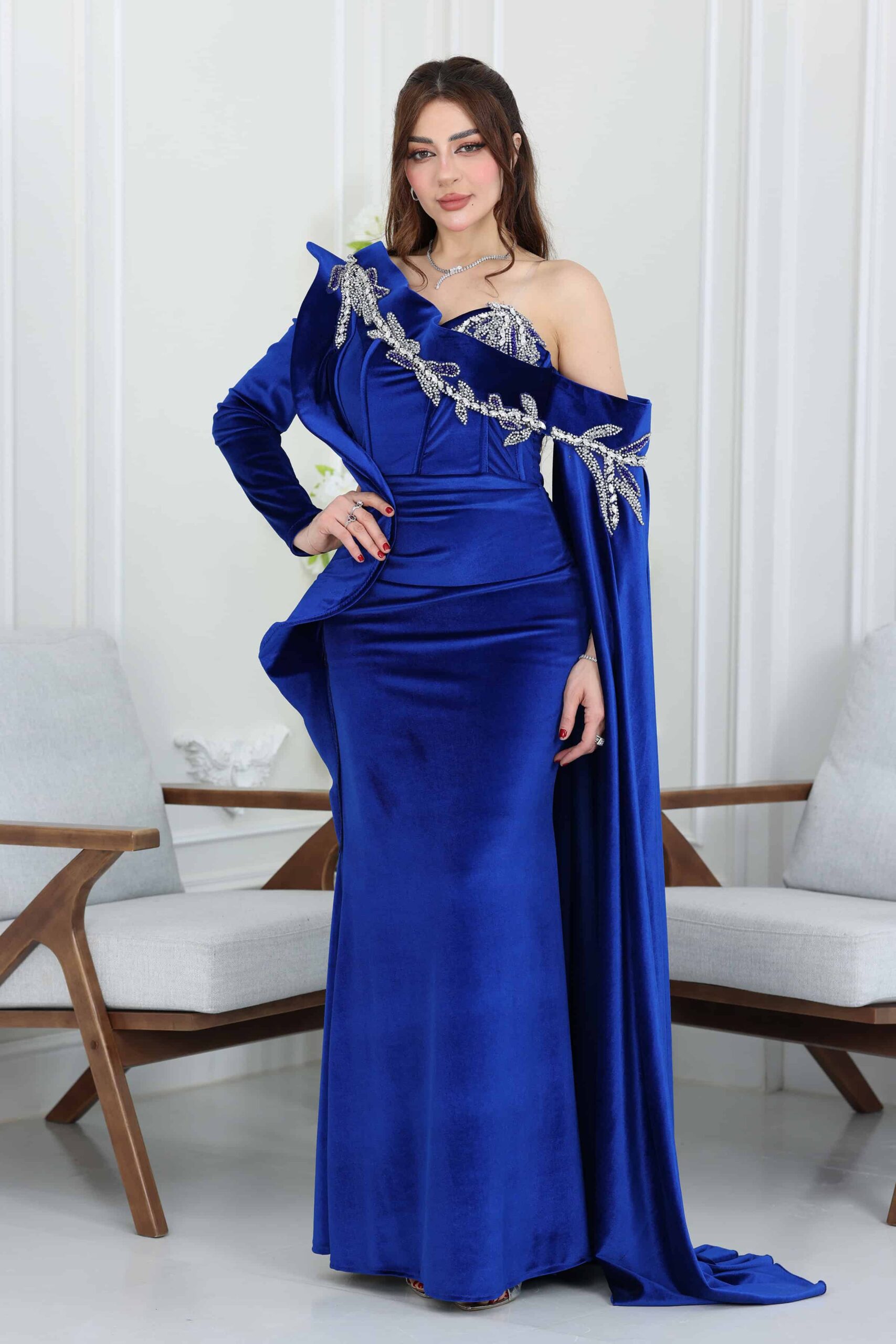 فستان سهرة مخمل فاخر هو خيارك الأكيد لإطلالة ما تنُسي في مناسباتك الكبيرة. هذا الموديل يجمع الفخامة والرقي، بتصميم حصري يلفت الأنظار. صُمم الفستان من قماش مخمل فاخر بلمسة ناعمة، مع كسرات أنيقة على منطقة الخصر تبرز جمال القوام. اللي يميّز فساتين السهرة هذي هو الوشاح المتدلي بكل أناقة، المطرز بالكريستال اللامع على الكتف والجزء العلوي، وهذا يعطي مظهر ملكي وراقي جدًا. مثالي لـ فساتين مناسبات مهمة مثل فساتين خطوبة أو حضور حفلات الزواج. متوفر في متجر المصمم الحديث بجودة عالية وضمان التميز. اختاري الفستان واضمني إنك النجمة! لا يفوتك وتألقي بأفخم إطلالة.