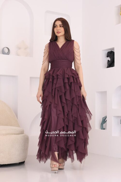 فستان سهرة مخمل بتطريز جانبي يتميز بالفخامة والرقي ليبرز جمالك في المناسبات الخاصة. وكما يتميز بأنه مصنوع من قماش المخمل الناعم الذي يعكس الأناقة، مع تطريز جانبي متقن يضفي لمسة من الفخامة والجاذبية. و بتصميمه الفريد الي يجعل منه الخيار المثالي للسهرات وحفلات الزفاف، حيث يجمع بين الراحة والجمال في إطلالة لا تُنسى