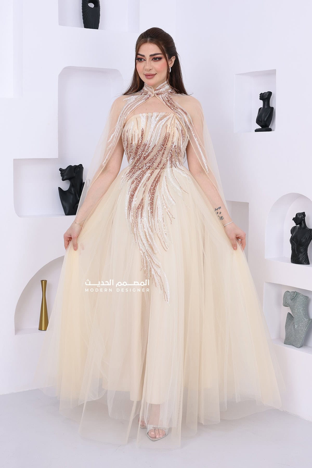 فستان سهرة ملكي بتصميم راقي يليق بذوقك الفخم يبرز جمالك بأسلوب فاخر، فهذا التصميم هو خيارك الأمثل! يتميز بياقة عالية مطرزة تضيف لمسة ملكية جذابة، مع أكمام أنيقة وتطريز فاخر على الصدر والخصر يعزز أنوثتك ويمنحك إطلالة ساحرة .يعكس جمالك وأناقتك، فهذا الفستان خيارك المثالي بإطلالة مميزة تعكس أنوثتك بأسلوب ملكي لا يُقاوم تصميم راقٍ مستوحى من فساتين السهرة الفخمة ليجعلكِ نجمة كل المناسبات التطريز الفاخر على الصدر والخصر يعزز جمال القوام بأسلوب أنثوي جذاب لمسة فاخرة تناسب السهرات الفخمة والمناسبات الخاصة.