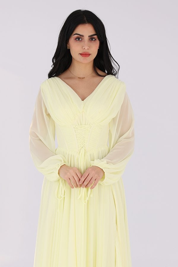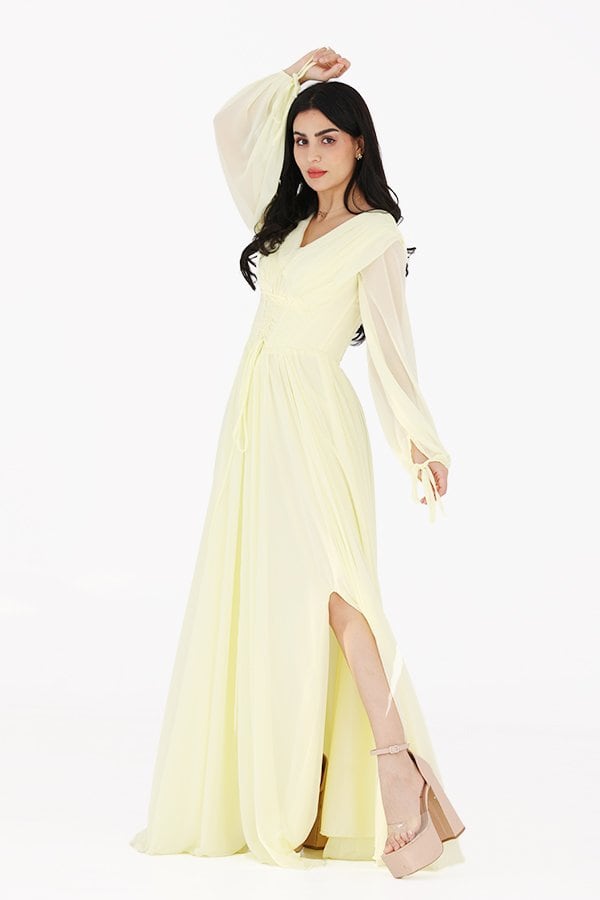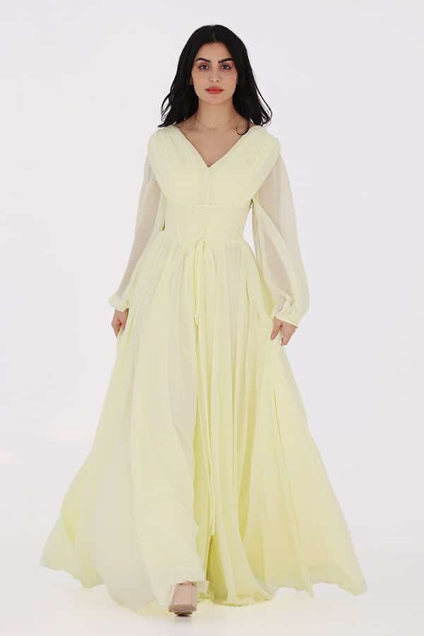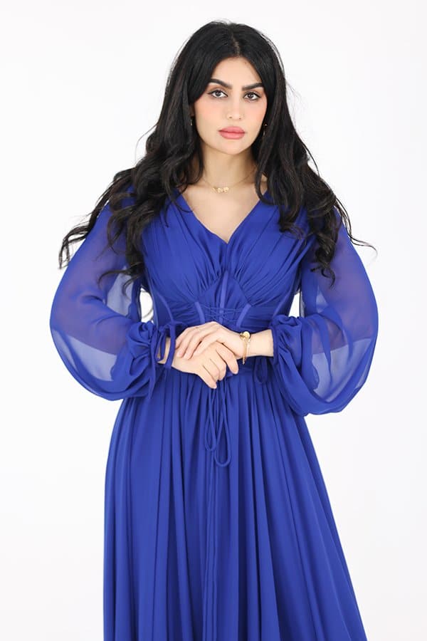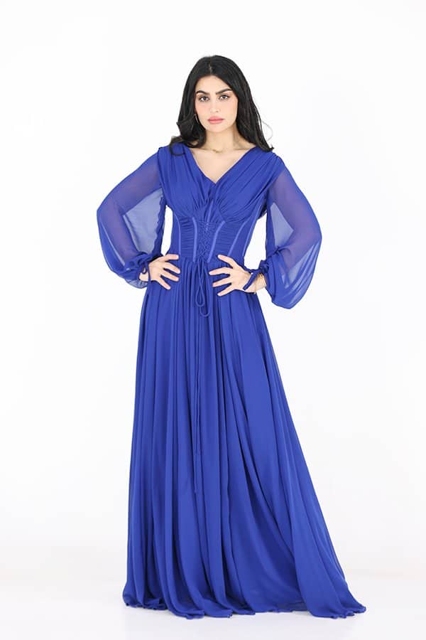 فستان سهرة من المصمم الحديث خياراً مثالياً بإطلالة كلاسيكية ساحرة في كل المناسبات صنع من خامة الشيفون فتحه من الامام ومزموم من الخصر ومميز بخيط بالصدر على اكمام طويله واسعه ومزمومه من اسفل اليد يجمع بين الجمال الكلاسيكي والتفاصيل الحديثة، وسيكون خيارًا مثاليًا لإطلالة ساحرة في جميع المناسبات. يمكنك زيارة متجرنا لاكتشاف مجموعة واسعة من الفساتين الراقية والأنيقة التي تناسب ذوقك وتلبي احتياجاتك.