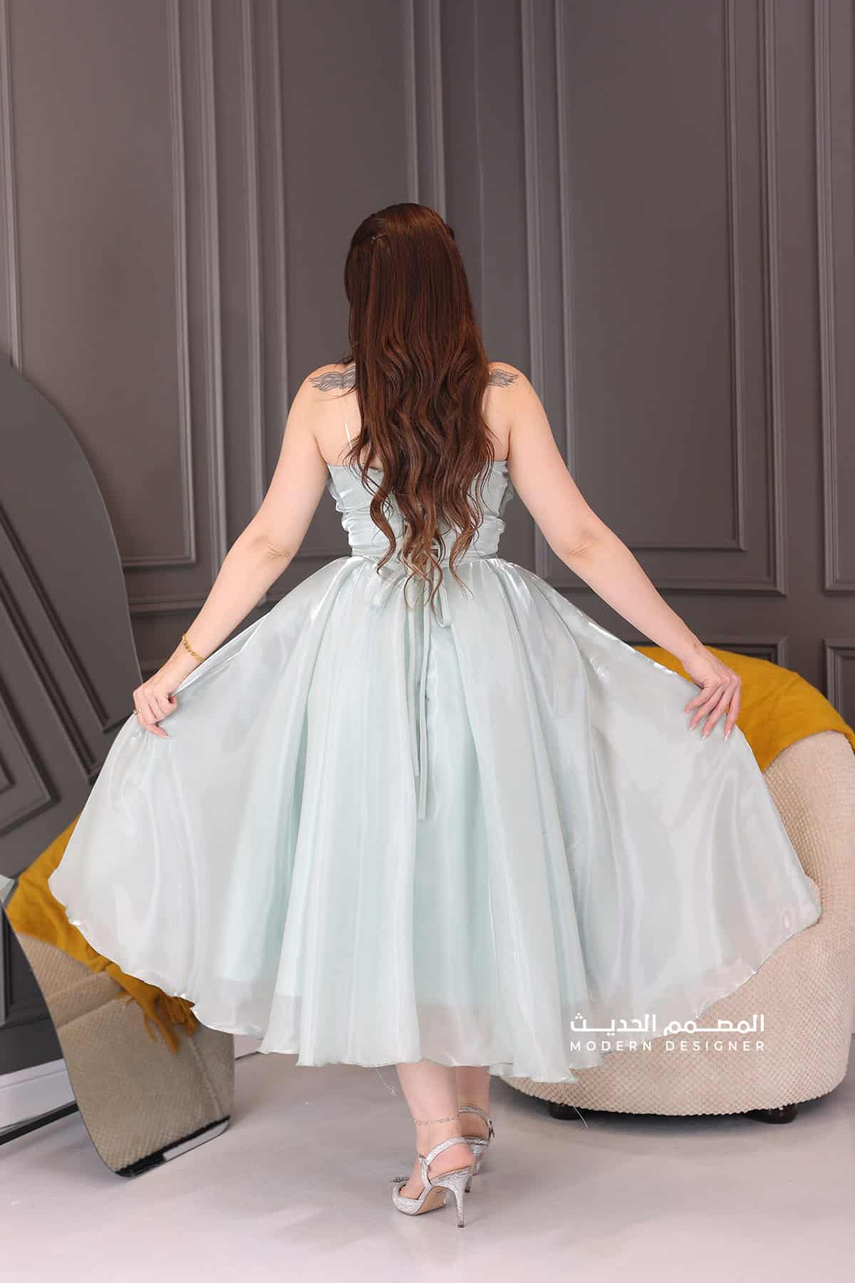 التخزين السليم: قومي بتخزين الفستان في مكان جاف ومنعزل عن الرطوبة للحفاظ على جمال الكريستالات والإكسسوارات.