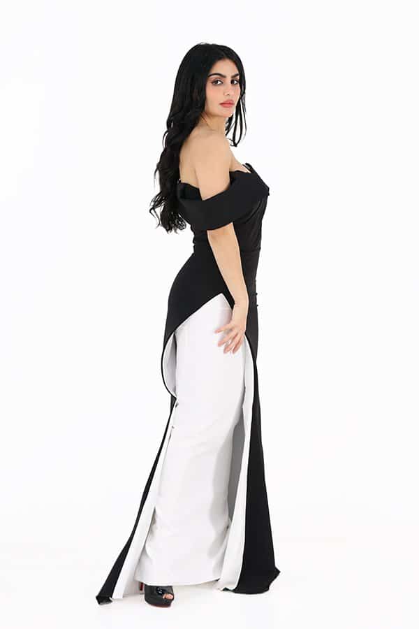 فستان سهره بأكمام اوف شولدر بالون ابيض اناقة وجمال في اللبس استمتعي الحين بالجمال والرقي استمتعي بالجمال والرقي مع هذا الفستان الرائع. تأكدي من الاستمرار في البحث عن المصمم الحديث الذي يلبي احتياجاتك وتفضيلاتك للحصول على أجمل تصميمات الفساتين الراقية. يتم صنع الفستان من خامة السكوبا الناعمة، وهي خامة فاخرة وناعمة تمنح الفستان مظهرًا راقيًا وجميلًا. تتميز هذه الخامة بقدرتها على التألق والتغلغل بشكل جميل على الجسم، يتميز الفستان بأكمام أوف شولدر، وهي أكمام تكشف عن منطقة الكتف بشكل جذاب ومثير. يعتبر هذه التفصيل مميز يضفي لمسة من الجاذبية والأنوثة على الفستان.