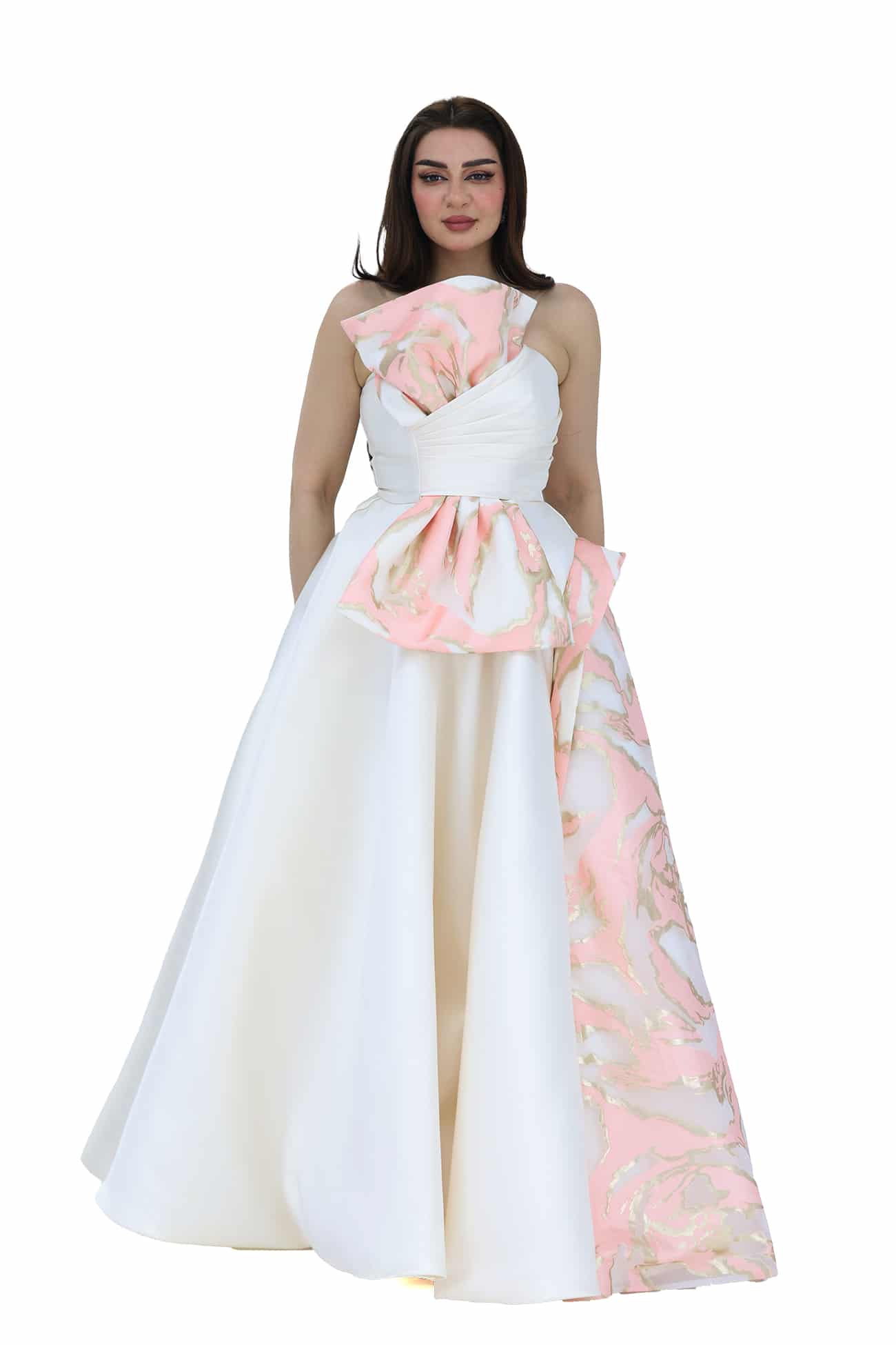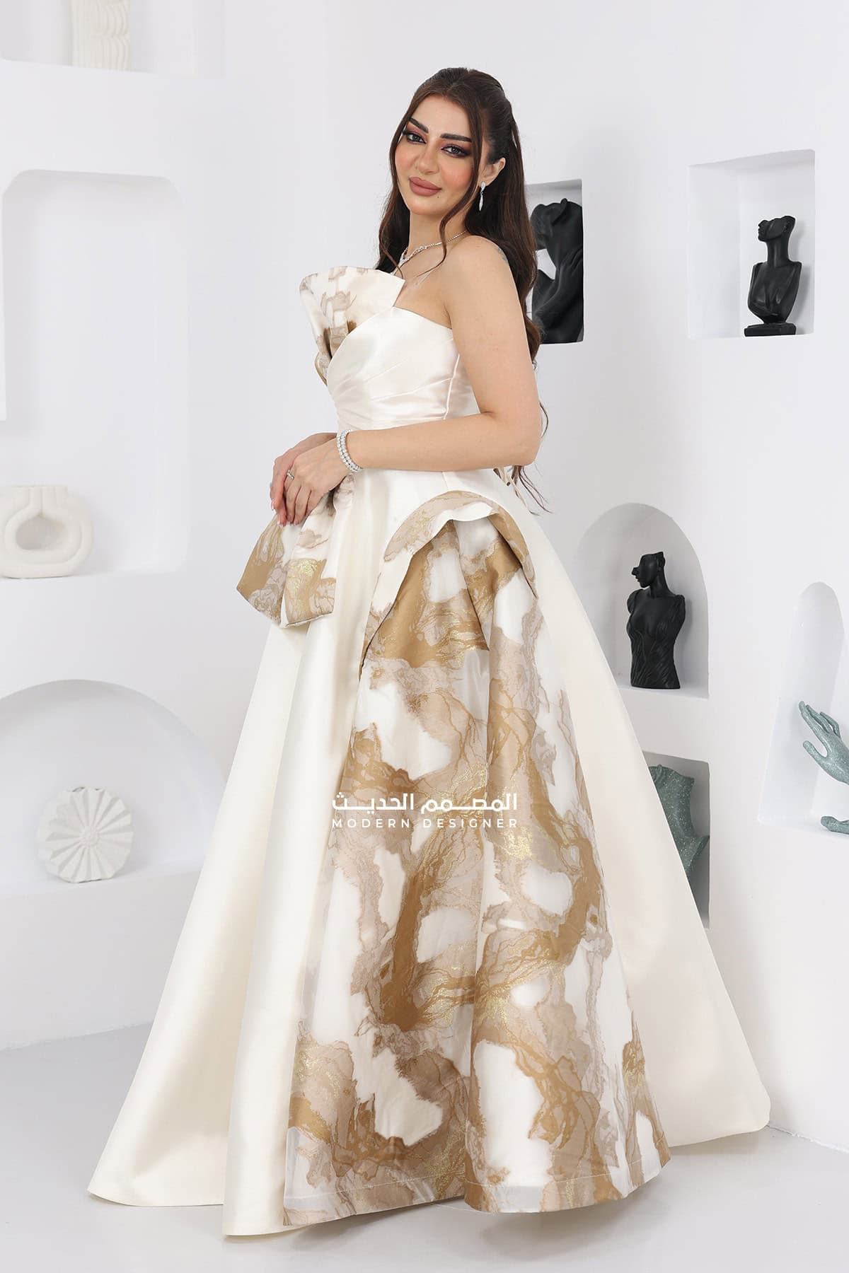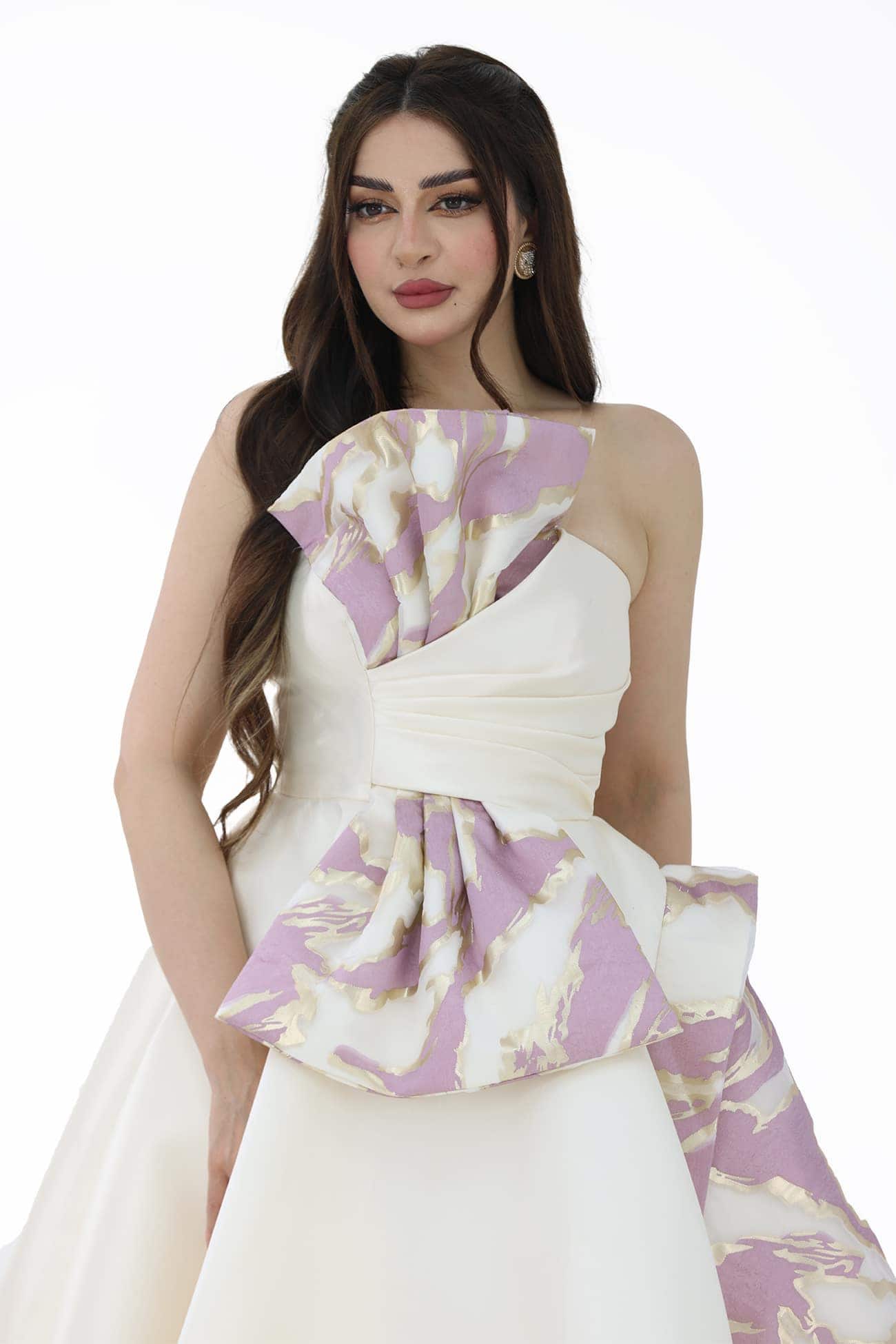 فستان سهره بفوينكة بالصدر من خامة الاورجانزا الفاخر يتميز الفستان بقصة الصدر الفوينكة يتميز التصميم بتدخل الألوان بالشال الجانبي ليبدو الفستان بأجمل طله واناقة حيث سيجعلك تبدين مذهلة وساحرة. اختيار تصميم فستان يتميز بقصة فوينكة وتداخل الألوان يعطيك إطلالة فريدة ومميزة.