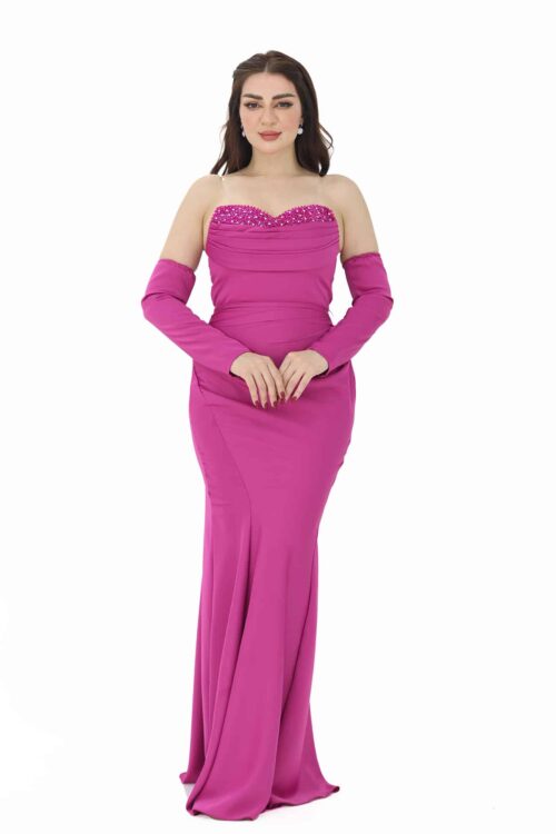 التخزين السليم: قومي بتخزين الفستان في مكان جاف ومنعزل عن الرطوبة للحفاظ على جمال الكريستالات والإكسسوارات.