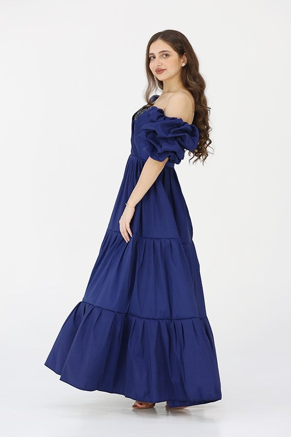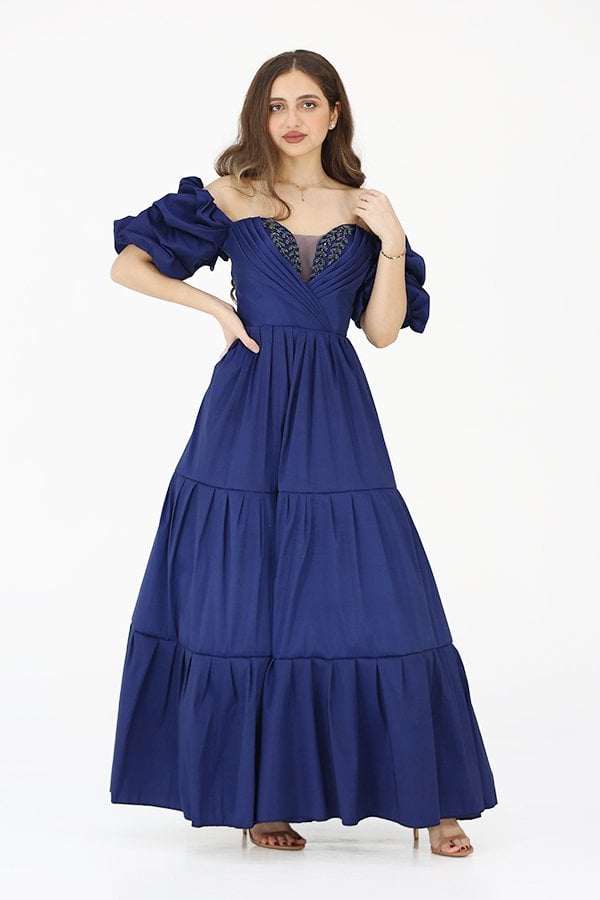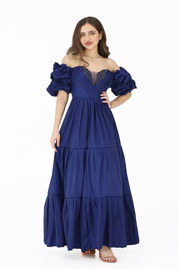 مع الخصر المزموم الذي يبرز منحنيات الجسم بطريقة أنثوية، يضمن هذا الفستان إطلالة متكاملة تجمع بين الأناقة والأنوثة. سيتحول كل خطوة ترتدينها إلى فرصة لتتألقي بجمالك، حيث ستجدين نفسك محط الأنظار في كل مناسبة. بفضل تصميمه الفريد والتطريز اليدوي المتقن، سيعكس ذوقك الرفيع وستشعرين بالثقة والجمال مع كل لحظة.