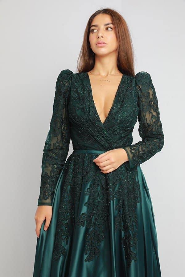 فستان طويل بأكمام طويلة مصمم بلمسة أنيقة مع رقبة ممتدة للكتفين، مصنوع من خامة التفته استرتش الرائعة التي تجمع بين الفخامة والراحة. سيمنحكِ هذا التصميم المميز إطلالة ساحرة تجذب الأنظار إليكِ في أي مناسبة خاصة، ويضفي لمسة من الرقي والأنوثة على مظهرك. تعتبر خامة التفته استرتش من الخيارات المثالية، حيث توفر راحة استثنائية وحركة طبيعية للجسم، مما يضمن لكِ شعوراً بالحرية التامة أثناء ارتدائه. ستتمكنين من التحرك بسهولة والرقص براحة دون القلق بشأن قيود الملابس، بينما تبقى إطلالتكِ مميزة طوال الوقت. بفضل فتحته الجذابة عند الصدر، يمنحكِ هذا الفستان مظهرًا أنيقًا ومتألقًا، ويضفي لمسة من الجرأة والأنوثة. إذا كنتِ تبحثين عن فستان يجمع بين الأناقة والراحة في آن واحد، فإن هذا التصميم هو الخيار المثالي لكِ لتتألقي في سهرتكِ القادمة.