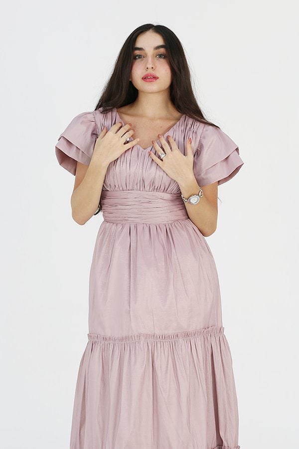 يعد هذا الفستان الخيار المثالي للمناسبات الخاصة والسهرات، حيث يجمع بين الأنوثة والرقي، مما يجعلك تبرزين في كل مناسبة. سواء كان لديك مناسبة رسمية أو احتفالية، سيضفي هذا الفستان لمسة من الفخامة والأناقة على إطلالتك.