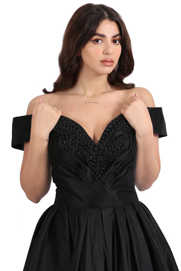 فستان طويل بتطريز يدوي على الصدر هو الخيار المثالي لإطلالة فاخرة وساحرة في المناسبات الخاصة. يتميز الفستان بتطريز يدوي دقيق ومميز على الصدر، حيث تمت إضافة تفاصيل رائعة تمنحه مظهرًا فاخرًا وجميلًا. هذا التطريز لا يقتصر على كونه مجرد زخرفة، بل هو جزء من تصميم مبدع يعكس الإبداع والدقة في العمل، مما يبرز جمال الفستان ويضيف له لمسة من الفخامة والتميز. التطريز اليدوي في هذا الفستان يُنفذ بواسطة خبراء محترفين في فن التصميم والخياطة، مما يعكس مستوى عالٍ من الحرفية والاهتمام بالتفاصيل. كل خيط من خيوط التطريز يوحي بالفن والدقة، مما يجعل الفستان يبدو وكأنه قطعة فنية استثنائية.