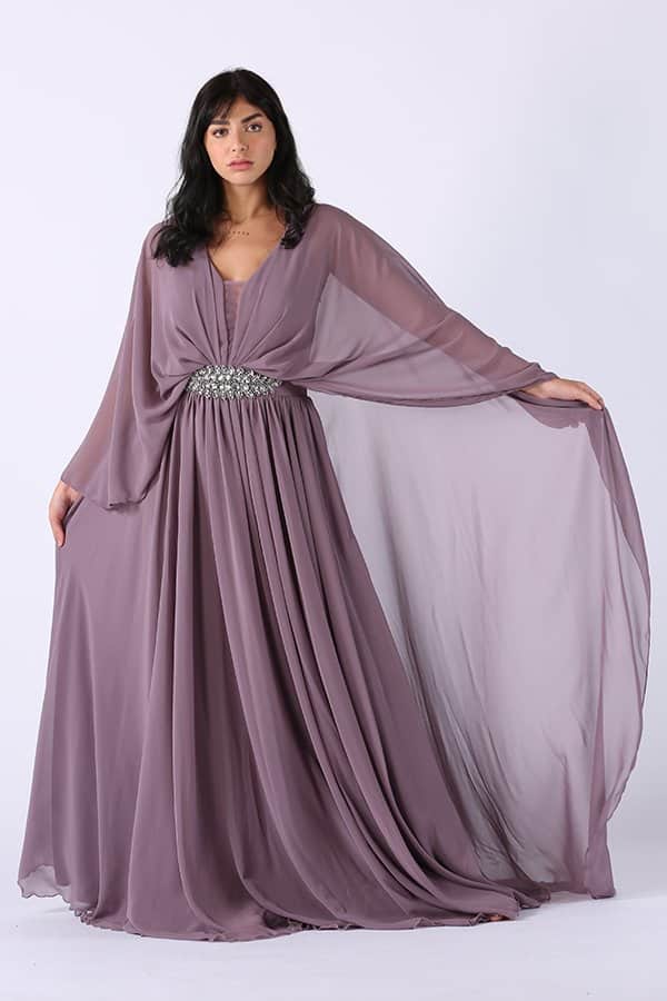 فستان سهرة طويل من خامة الشيفون هو تجسيد حقيقي للأناقة والفخامة في تصميم واحد. يتسم الفستان بلمسة من الرقي بفضل خامة الشيفون الناعمة التي تتدفق برشاقة مع كل حركة، مما يضيف لمسة من السحر والجمال لإطلالتك. الحزام الأنيق الذي يزين الخصر يضيف لمسة من التميز، حيث يعمل على تحديد الخصر بشكل رائع، مما يبرز جمال القوام ويمنحكِ إطلالة متكاملة ومتوازنة.