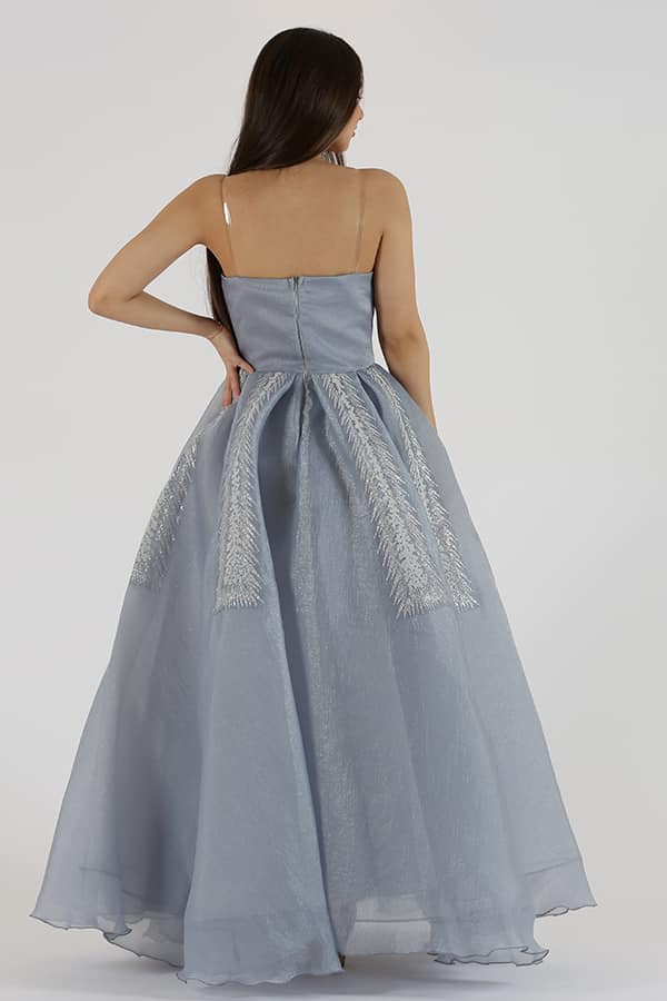 التخزين السليم: قومي بتخزين الفستان في مكان جاف ومنعزل عن الرطوبة للحفاظ على جمال الكريستالات والإكسسوارات.