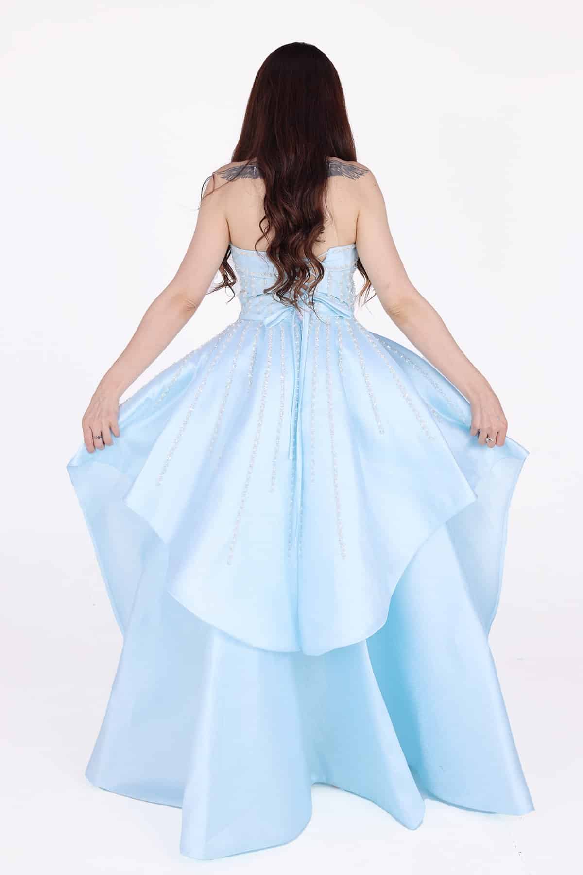 التعامل بحذر: عند ارتداء وخلع الفستان، تجنبي السحب الشديد والتعامل الخشن الذي قد يؤدي إلى تلف الكريستالات والإكسسوارات.