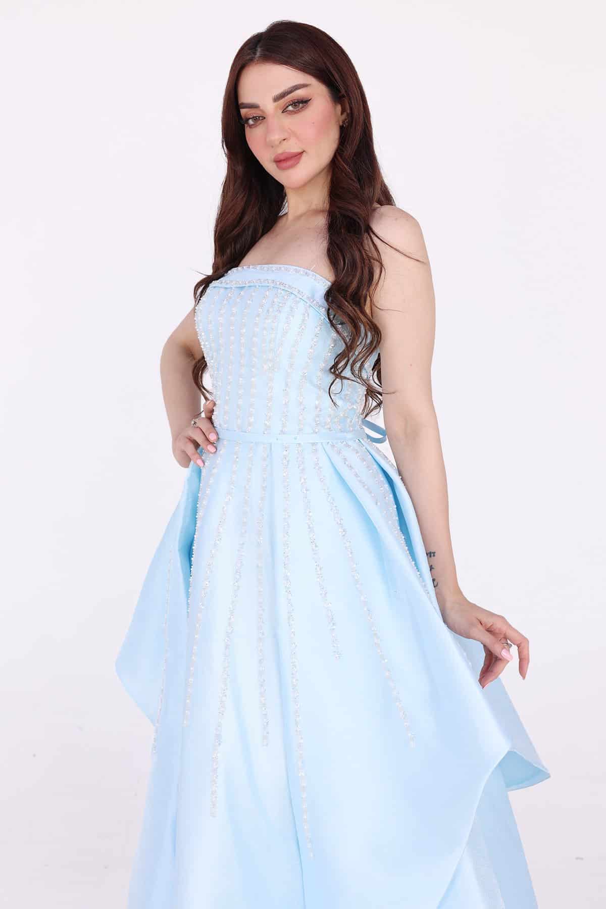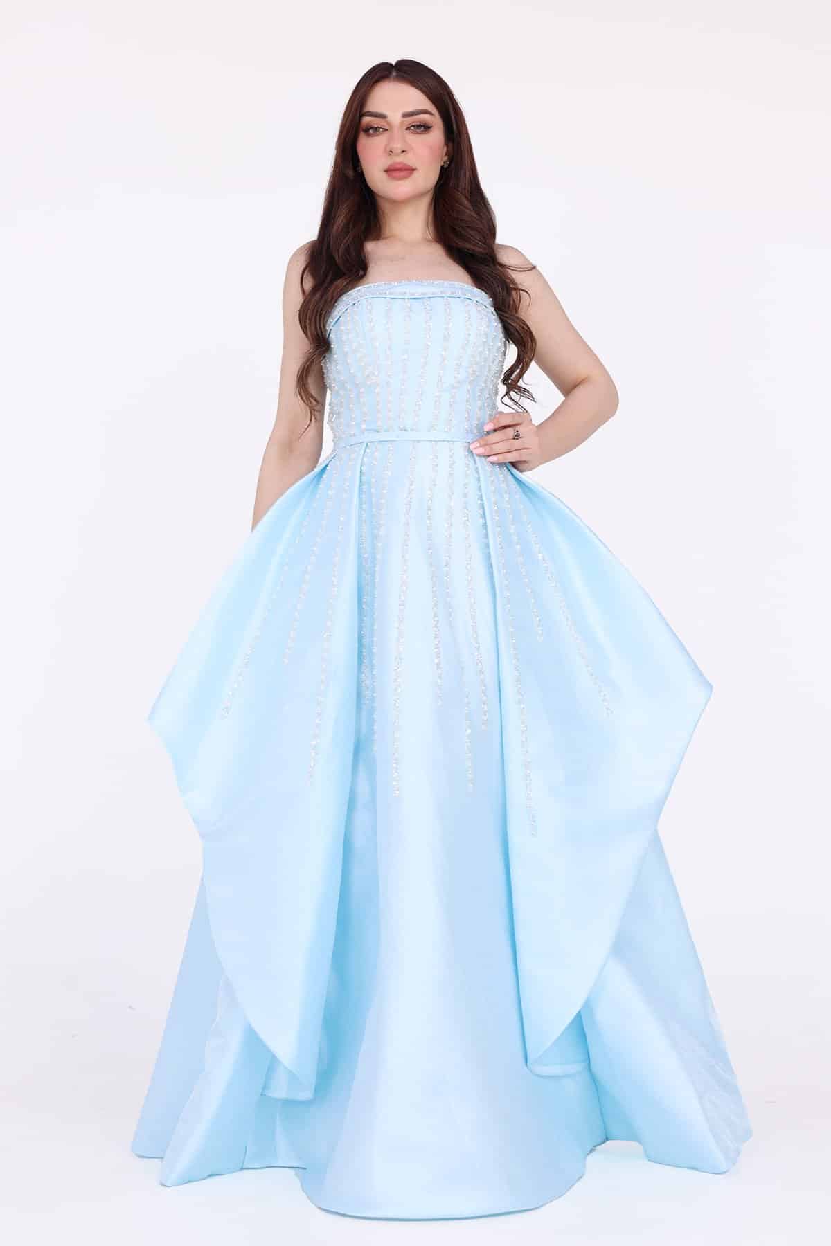 فستان طويل بكلفة تطريز يمنح الفستان أناقة وجاذبية خاصة. إنه لون منعش ويناسب مختلف ألوان البشرة ويضفي عليها بريقًا لافتًا. بتطريز أنيق هو منتج رائع يضفي جاذبية وأناقة على إطلالتك في المناسبات الخاصة والسهرات الرسمية يعتبر التطريز من التفاصيل التي تضفي لمسة أنيقة على الفستان. يتميز الفستان بلون سماوي وموف رقيق وجميل يضفي على الإطلالة أناقة وجاذبية خاصة. إنه لون منعش يلائم مختلف ألوان البشرة ويضفي عليها بريقًا لافتًا. يتميز الفستان بتصميم وقصة متنوعة تناسب مختلف أشكال الجسم وتعزز الجمال الطبيعي. يمكن أن يكون له قصة ضيقة وملتصقة بالجسم أو قصة فضفاضة ومنسدلة،
