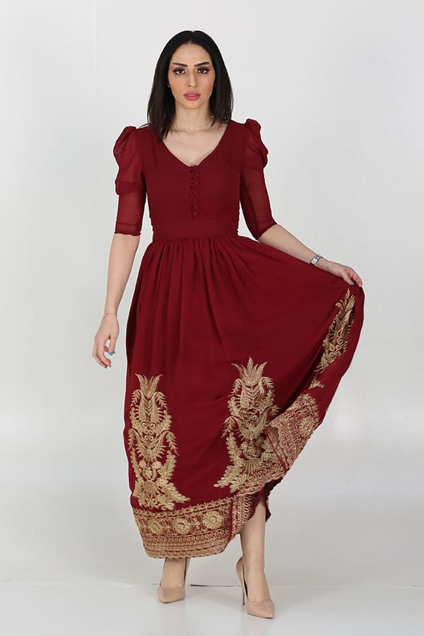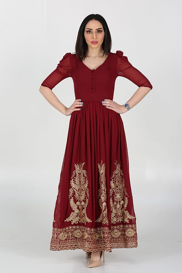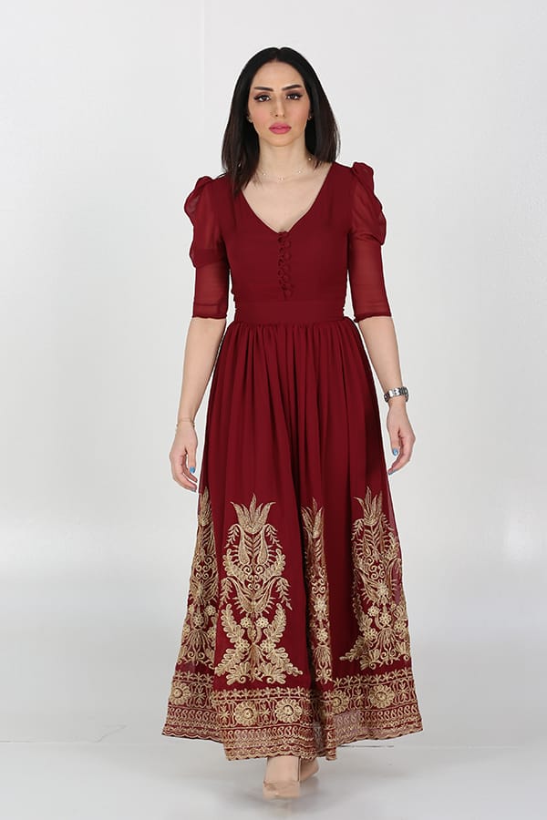فستان ناعم أنيق مطعم بكلف هندي في الأسفل هو قطعة فاخرة تجمع بين الأناقة والفخامة بأسلوب فريد، مما يجعلها الخيار المثالي للمناسبات الخاصة والأحداث الرسمية. يتميز الفستان بتفاصيله الهندية الرائعة التي تضيف لمسة من السحر والتفرد، خاصةً في الكلف الهندي المتقن الذي يزين الجزء السفلي للفستان، مما يمنحها طابعًا ملكيًا وأنيقًا.