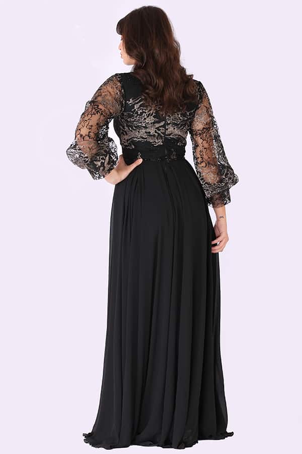 الأكمام: يتميز الفستان بأكمام طويلة واسعة، مما يضفي لمسة من الأناقة والجمال على التصميم. تعزز هذه الأكمام الطويلة واسعة طابع الفخامة والرومانسية للفستان.