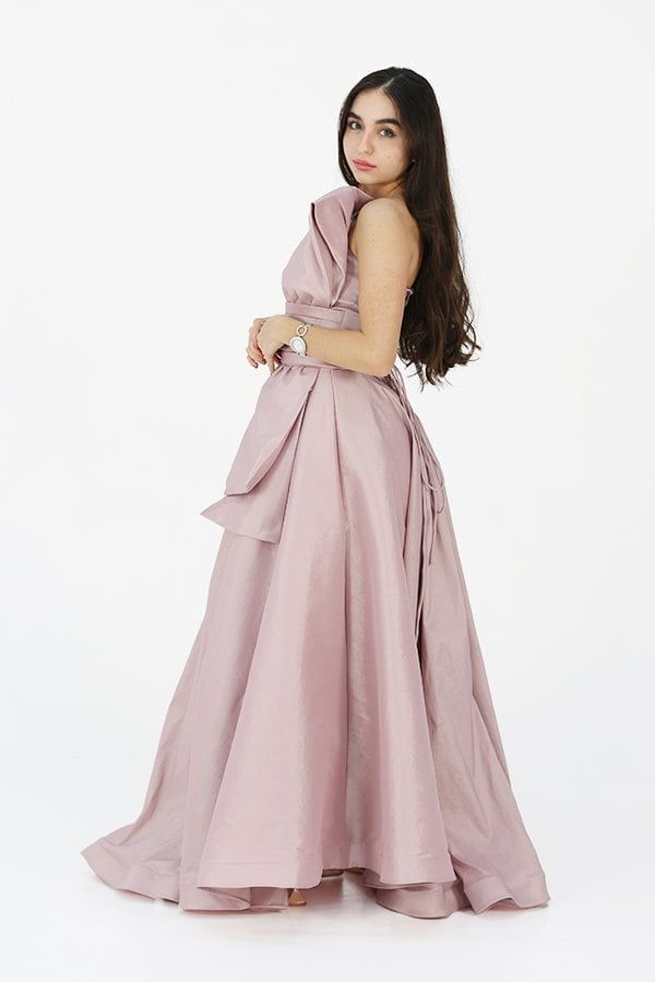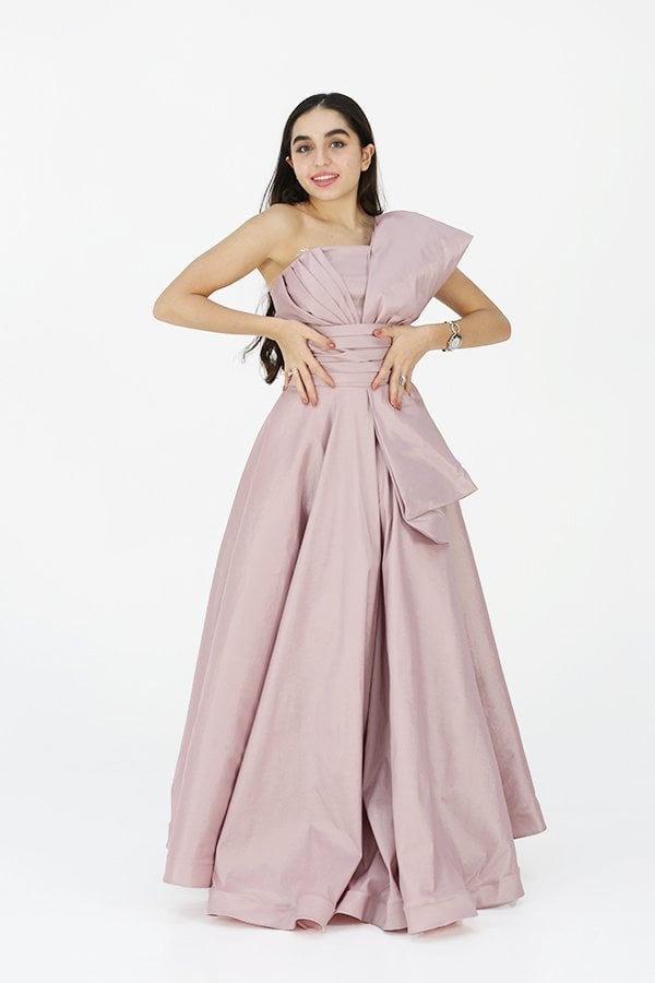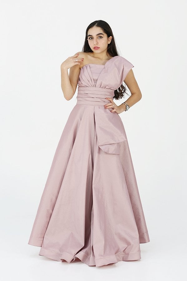 فستان طويل من خامة التفتا شانتون بكتف واحد هو اختيار مثالي لإطلالة أنيقة وجذابة في المناسبات الخاصة. يتميز الفستان بتصميم كلاسيكي رائع يعكس الفخامة والأنوثة بأفضل طريقة. مع الخامة الفاخرة للتفتا شانتون، يضفي الفستان لمسة من اللمعان والنعومة، مما يعزز جمالك الطبيعي ويبرز تفاصيل القوام بشكل مميز. تتميز تفاصيل الفستان بتصميم الكتف الواحد الذي يضفي لمسة عصرية وجذابة، بينما يعمل الخصر المزموم على تحديد الجسم بشكل مثالي، مما يعزز الأنوثة ويضفي لمسة من الأناقة. هذا التصميم المزموم يبرز جمال القوام، ويمنح الفستان طابعًا رقيقًا وفاخرًا، ما يجعله خيارًا مثاليًا لإطلالة مميزة في حفلات الزفاف أو السهرات الفاخر تفاصيل المذهلة في التصميم، مثل الكتف الواحد والخصر المزموم، سيجعلك هذا الفستان محط الأنظار ويجعل إطلالتك لا تُنسى. استعدي لتتألقي بثقة في هذا الفستان المذهل الذي يضمن لكِ إطلالة رائعة تنبض بالأناقة والفخامة في كل مناسبة.
