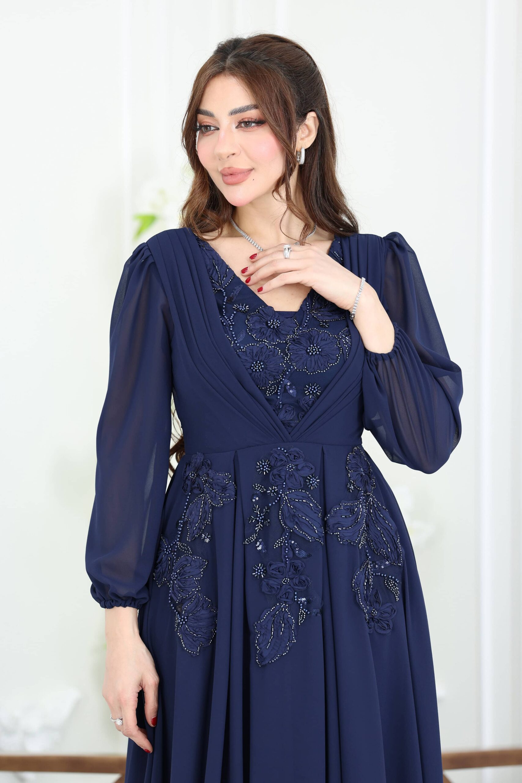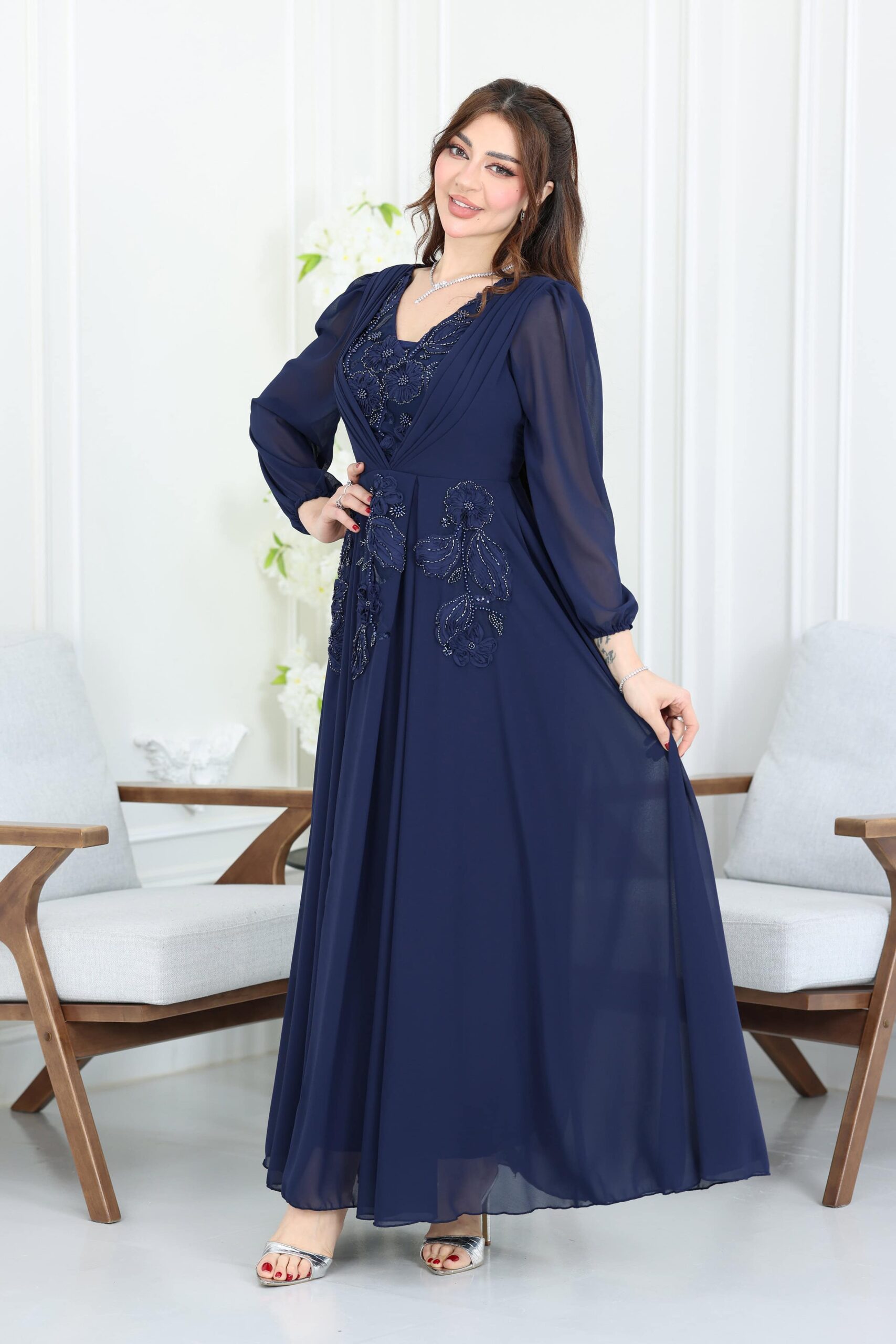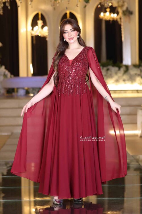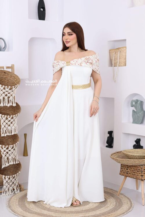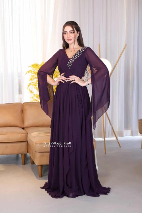 فستان فخم مطرز تصميمه يبرز الأناقة بتفاصيل التطريز البارزة والمرصعة بعناية فائقة مع الكم الطويل المنفوخ خفيف وناعم يضيف لمسة ملكية ومحتشمة، والقماش المنسدل بطريقة خفيفة ومريحة يخلي الفستان مثالي للبس الطويل والحركة بكل بسهولة.ا كسبي المظهر اللي تبغينه، سواء كان لمناسبة زواج أو حفلة خطوبة أو حتى جمعات العيد الكبيرة. هذا الفستان هو استثمار حقيقي في فخامة حضورك. لا تفوّتي فرصة تألقك بأحد أرقى موديلات الفساتين عندنا! اطلبيه الحين وكوني محط الأنظار