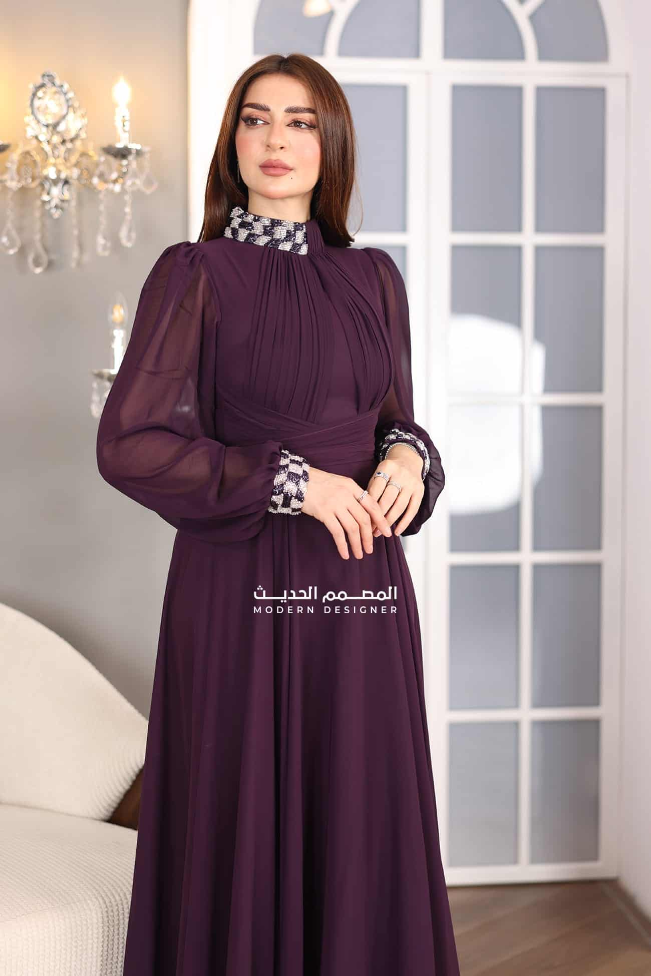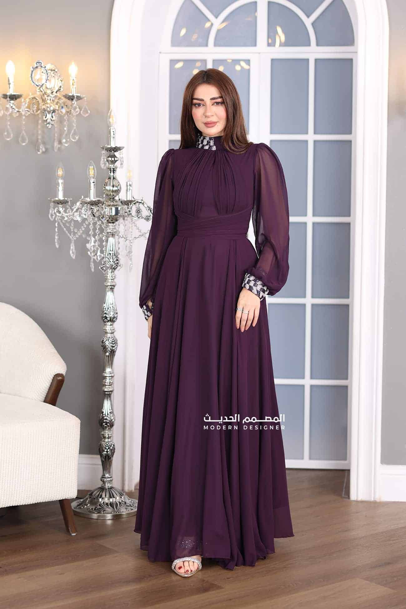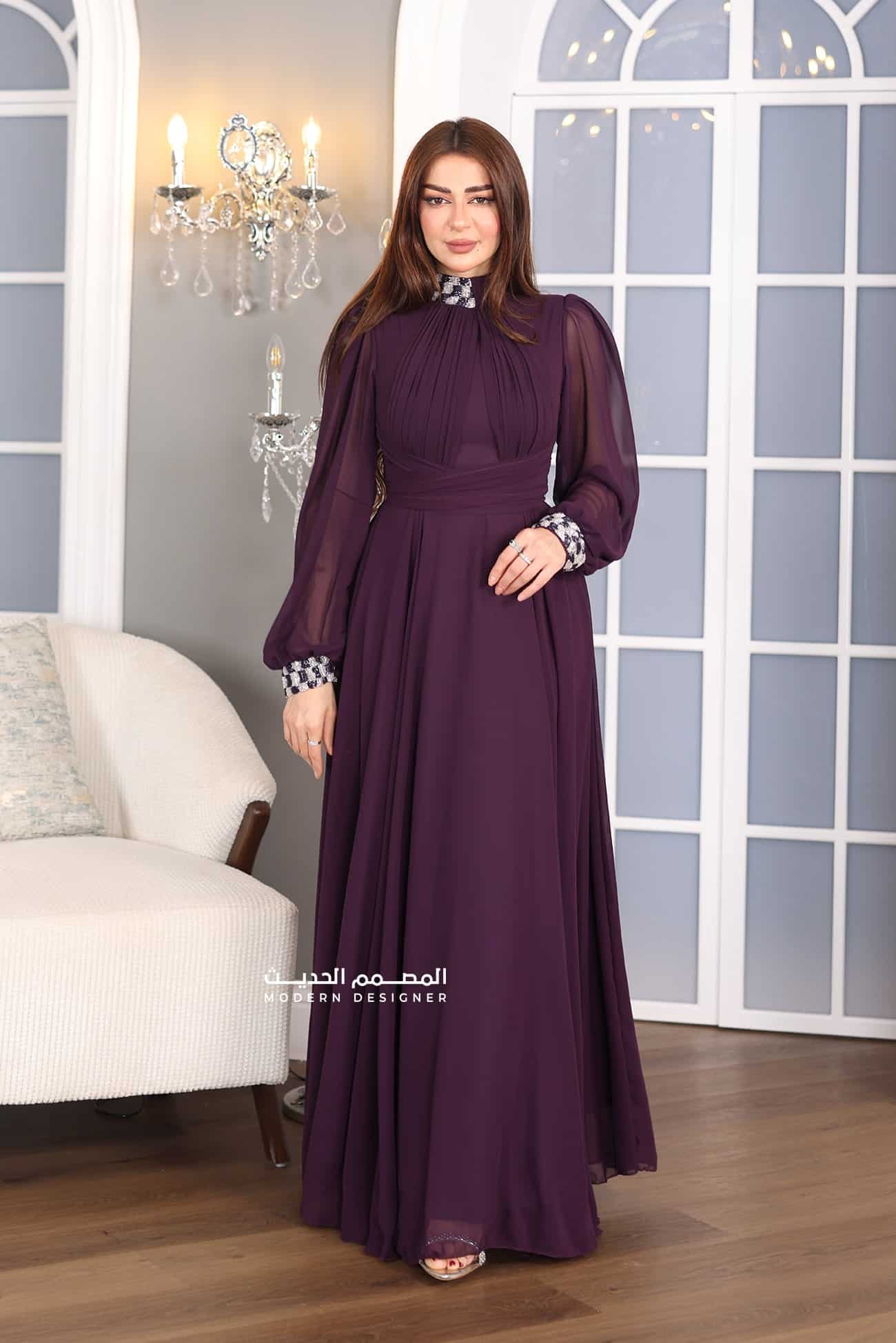 فستان مناسبات شيفون فخم من خامة الشيفون الفاخر يتميز الفستان بإكمام طويلة بتطريز اطرف الاكمام والرقبة صدر لف يعتبر خيارًا مثاليًا للسيدات اللواتي يرغبن في الحصول على إطلالة فخمة وأنيقة في المناسبات الخاصة. الشيفون هي خامة فاخرة وخفيفة الوزن، وتضفي لمسة من الأناقة والجمال على الفستان. يتميز الفستان بتصميمه الأنيق والفخم، مما يجعله مناسبًا للمناسبات الرسمية والحفلات الخاصة. يتميز الفستان بأكمام طويلة مزينة بتطريزات رائعة، مما يضفي لمسة جمالية فريدة على الفستان ويجعله ملفتًا للنظر.