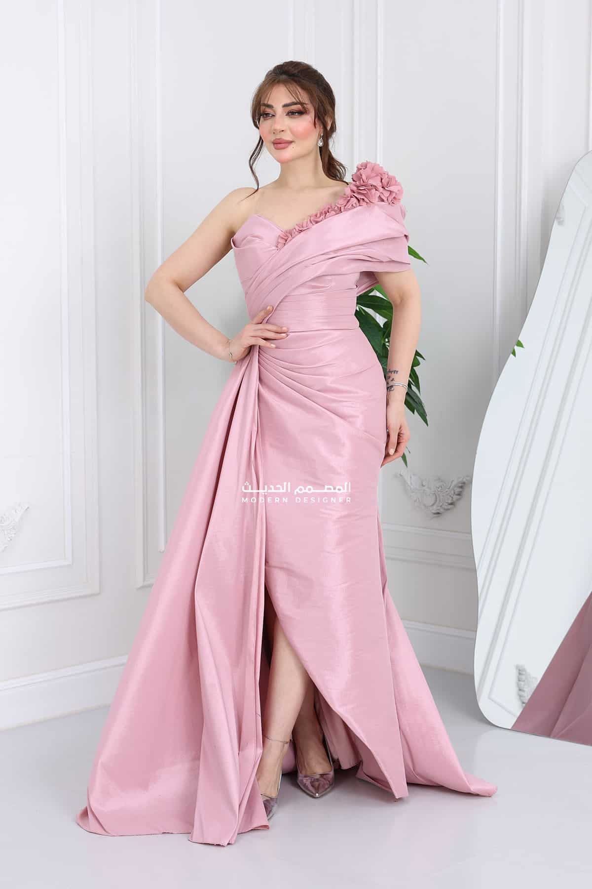 فستان مناسبات مميز فستان سهرات مميز مصنوع من خامة الشانتون الفخمة اللي تعطيك لمعة ناعمة وأنيقة تخطف الأنظار! الفستان يجي بكم واحد على يد وحدة بتصميم عصري وملفت، مع بورد بارز وأنيق على الكتف يضيف لمسة فخامة ساحرة.الفستان مزود بشال جانبي بكسرات أنيقة تنسدل بطريقة راقية وجذابة، تعطيك إطلالة ملكية تناسب جميع المناسبات والحفلات،تصميم الفستان مصمم بعناية ليناسب جميع الأذواق ويبرز جمال قوامك بطريقة ناعمة ومميزة.فستان مناسبات فخم، أنيق، وملفت، هذا الفستان هو خيارك الأول! متوفر بألوان عصرية تناسب كل الأوقات وكل الأذواق