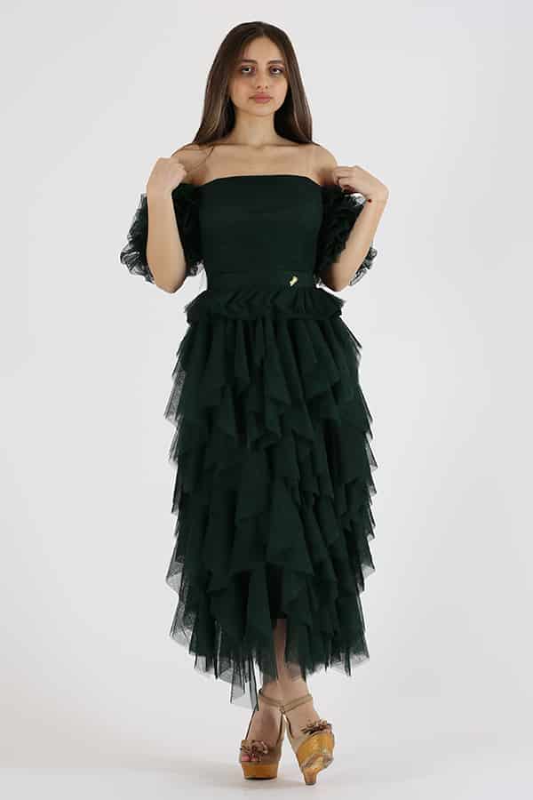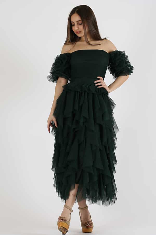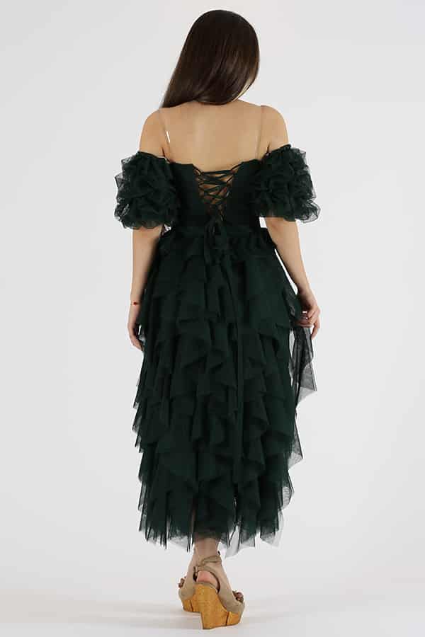 فستان ميدي سهرة انيق من خامة التل الناعم بأكمام مزمومة مميز بقصات المتمايلة في الأسفل على قصة كلوش يمكن أن تختلف المميزات الدقيقة والتفاصيل حسب التصميم الفردي للفستان أن تختلف المميزات الدقيقة والتفاصيل حسب التصميم الفردي للفستان.