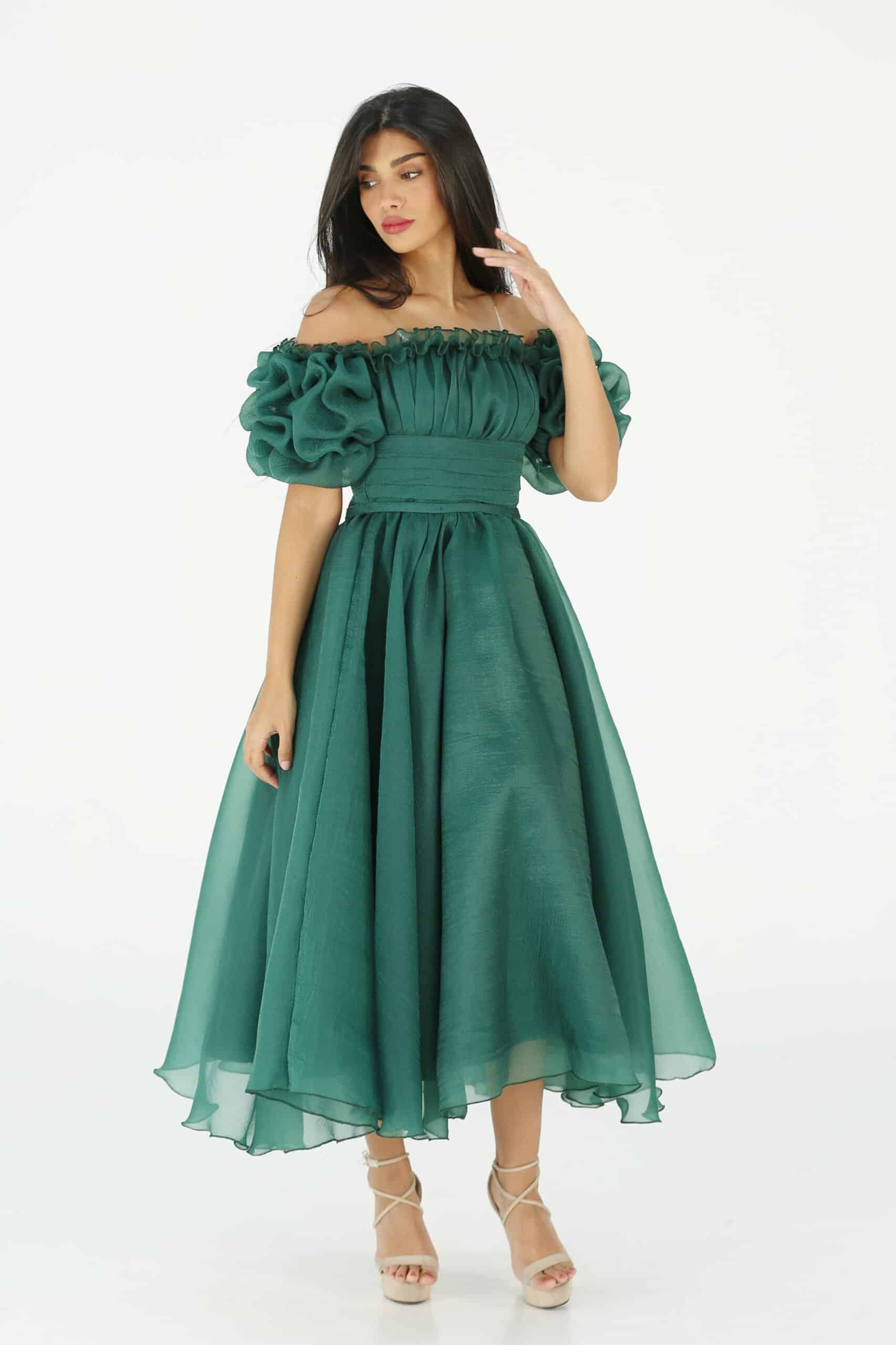 اللون الزيتي الهادئ يعكس الرقي ويمنحكِ مظهراً فاخراً يناسب جميع أنواع السهرات والمناسبات الخاصة. يجمع الفستان بين البساطة والفخامة في آن واحد، ليمنحكِ إطلالة مميزة بكل تفاصيلها.