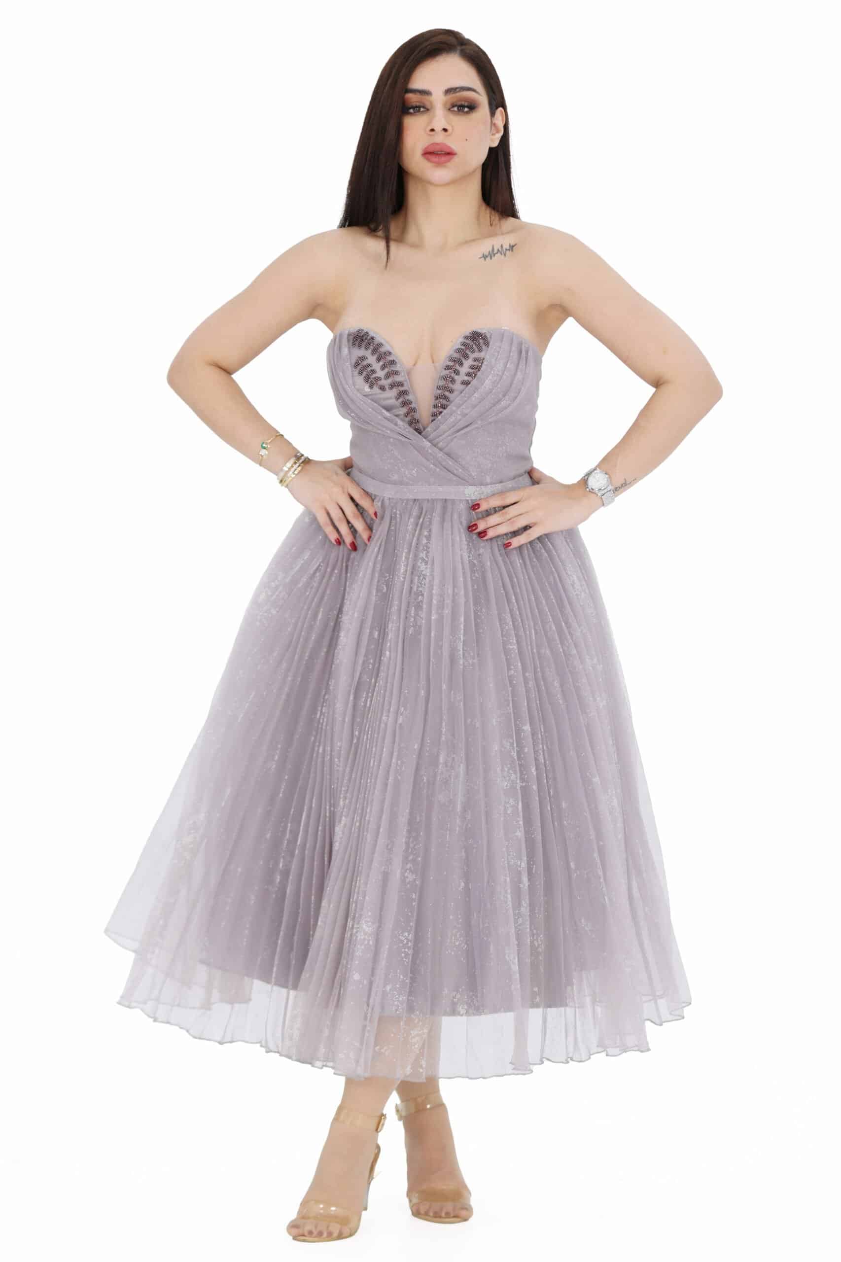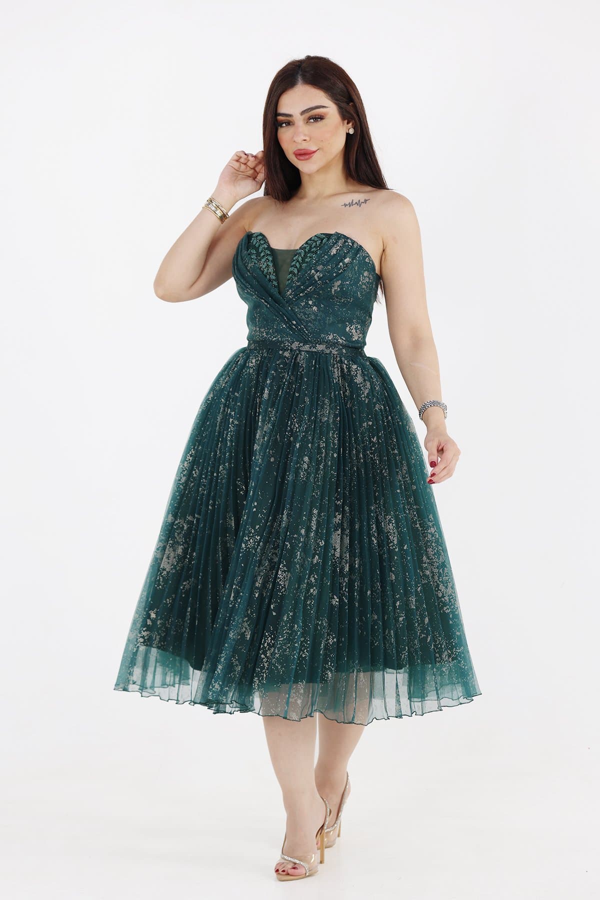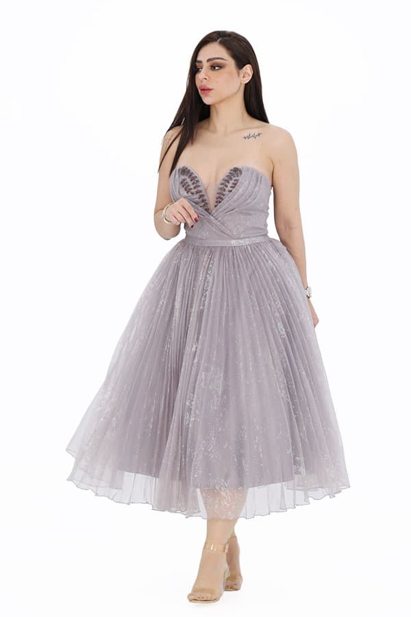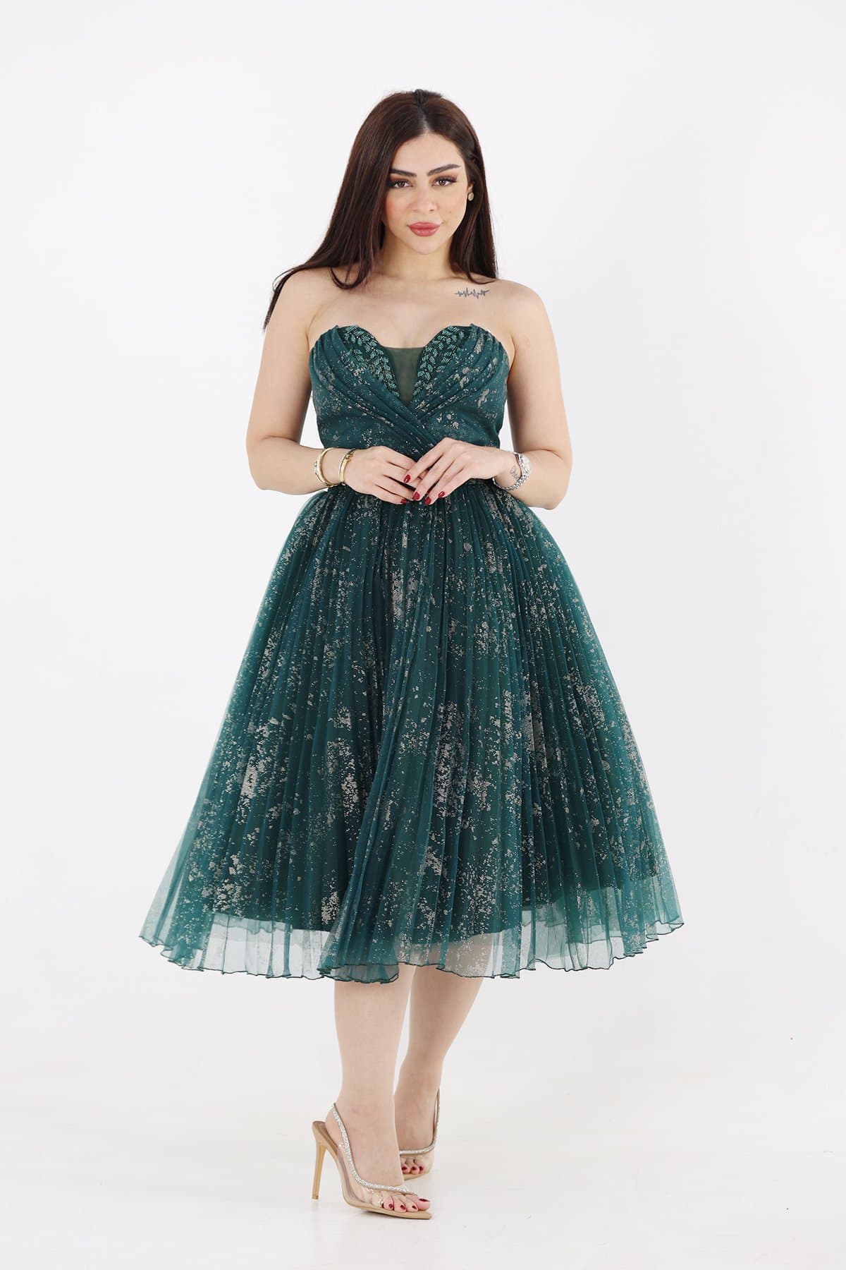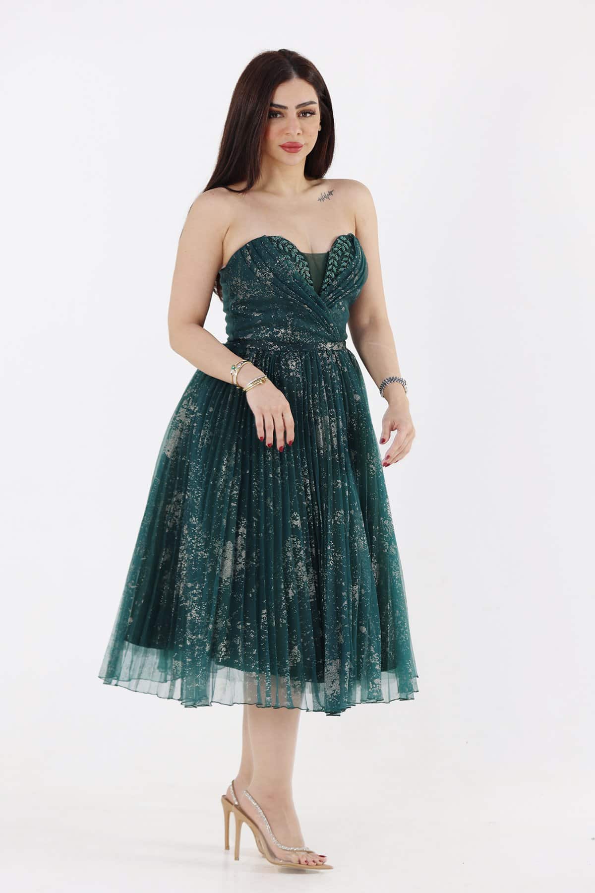 فستان ميدي سهرة توب راقي بتطرز يدوي على الصدر بيليسية في الاسفل من خامة الأورجانزا هو قطعة ساحرة وفريدة من نوعها. يتميز هذا الفستان بتصميمه المذهل والأنيق الذي يلفت الأنظار ويبرز جمال الأنوثة.
