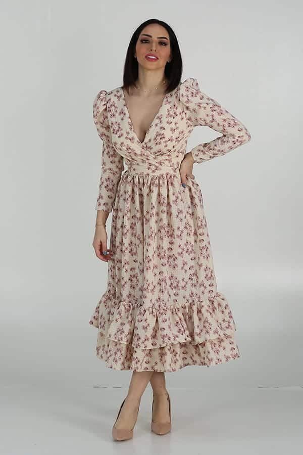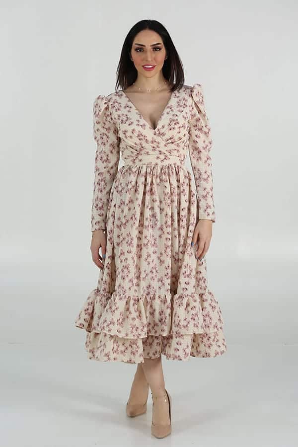 يتميز الفستان بنمط مشجر جذاب بألوان وأشكال تبرز جماله وتضفي عليه طابعًا عصريًا. سواء تم تنسيقه مع حذاء بكعب عالٍ لإطلالة أكثر رسمية أو مع حذاء مسطح لإطلالة مريحة، سيمنحك الفستان إطلالة جذابة تناسب جميع المناسبات. إضافة إلى ذلك، يمكن تنسيق الفستان مع إكسسوار بسيط ليكتمل المظهر بشكل مميز.