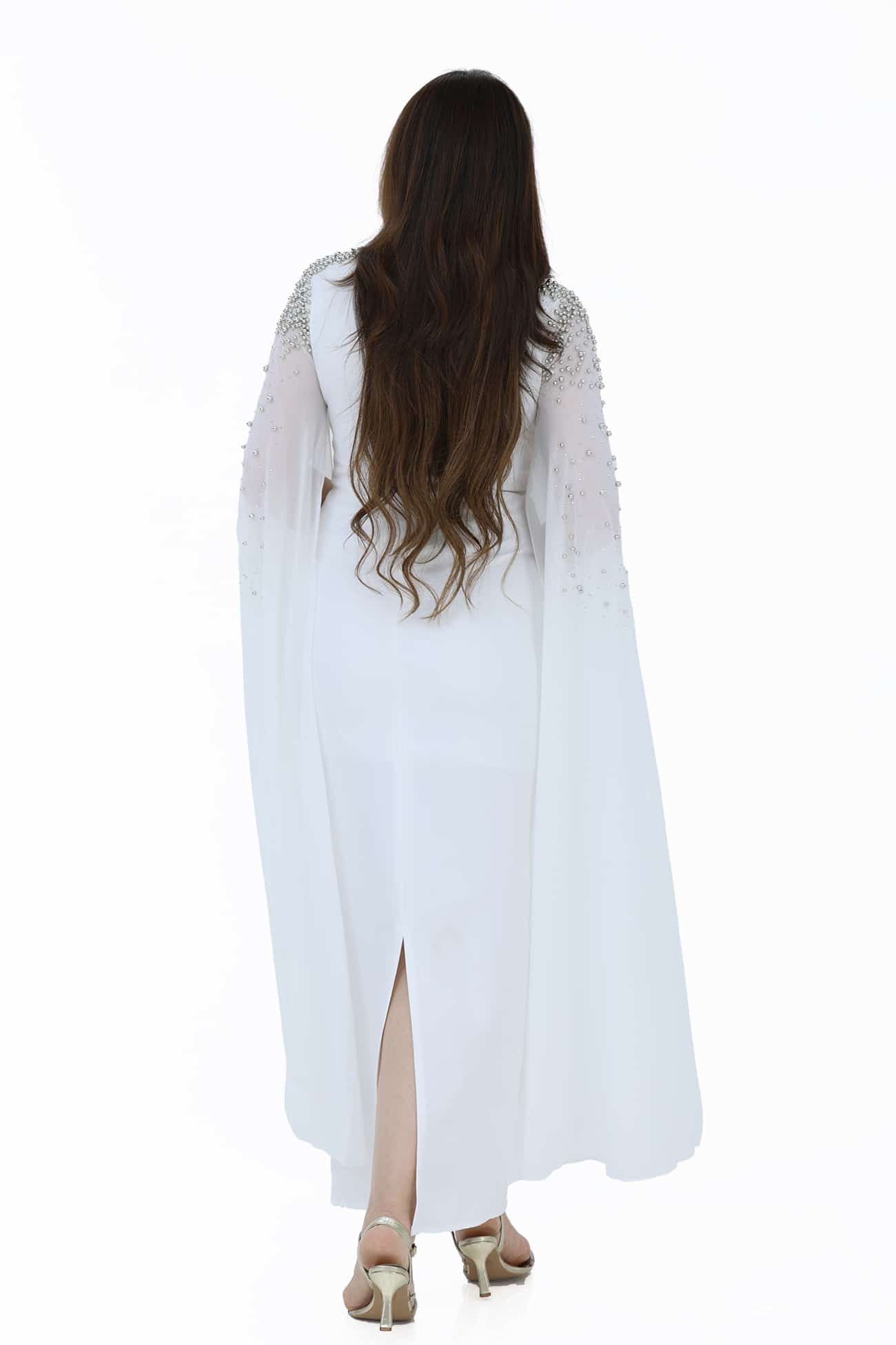 التخزين السليم: قومي بتخزين الفستان في مكان جاف ومنعزل عن الرطوبة للحفاظ على جمال الكريستالات والإكسسوارات.