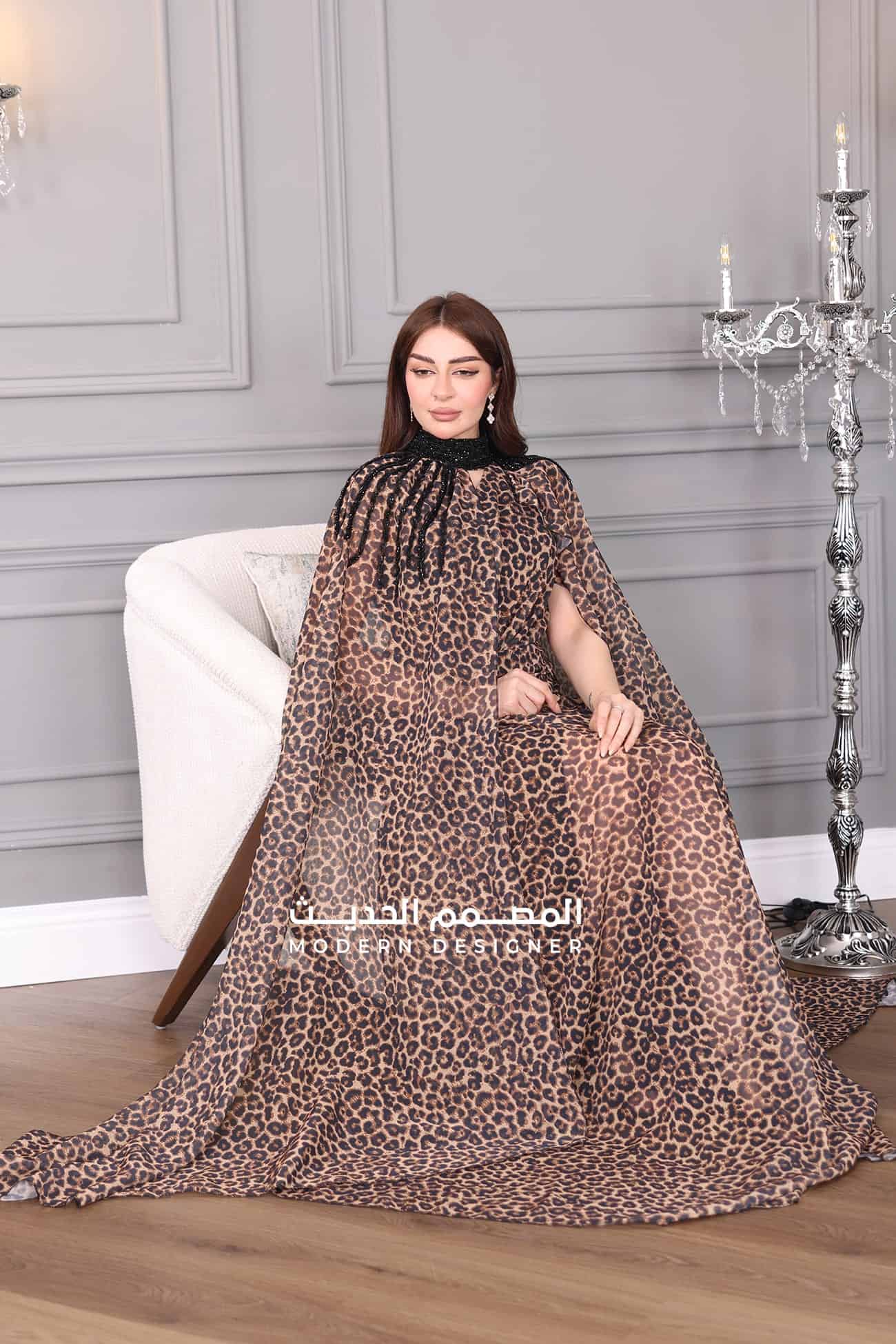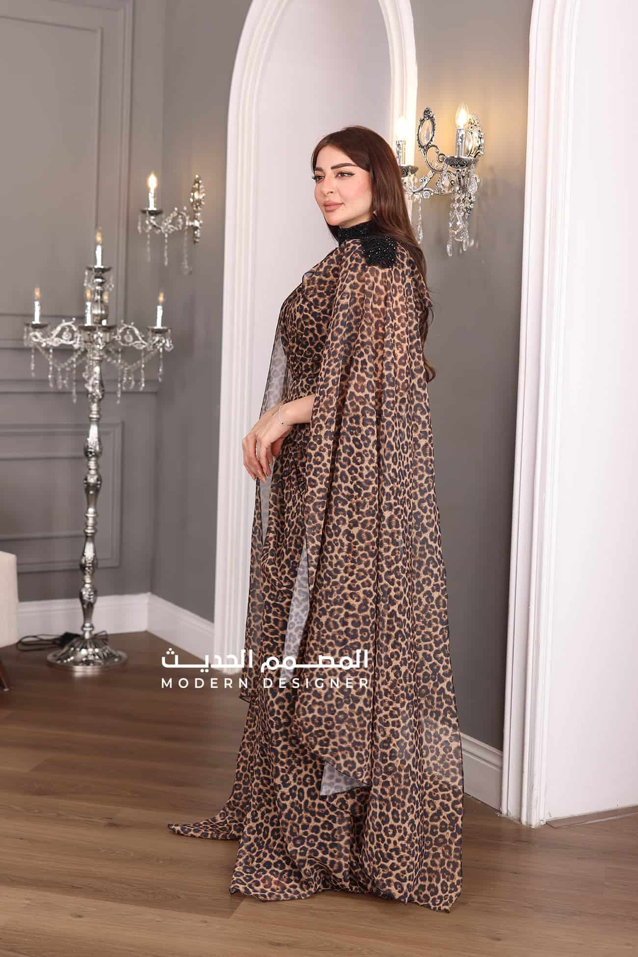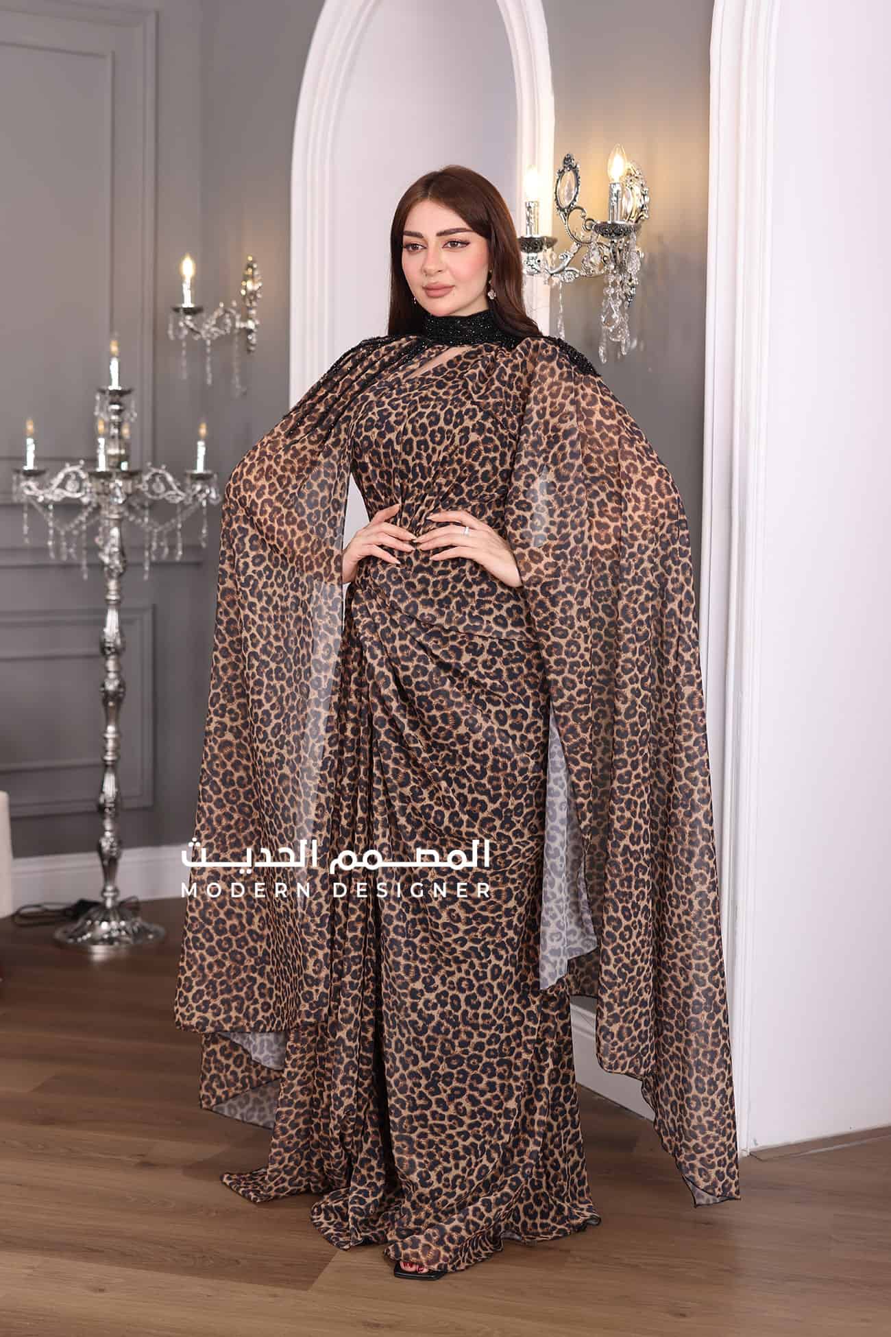 فستان ناعم نمري فخم بتطريز على الرقبة بأكمام طويله منديل يتميز الفستان بلف على الخصر بكسرات أنيقة يتم تصميم الفستان بقصة تبرز جمال وأنوثة قوام المرأة، مما يجعله مثاليًا للمناسبات الخاصة والحفلات يتم استخدام قماش ناعم وفائق الجودة في صنع الفستان، مما يوفر الراحة والملمس اللطيف على البشرة. يتم تطريز الرقبة بتصاميم دقيقة ومعقدة، مما يضيف لمسة من الفخامة والتألق إلى الفستان.تمتد الأكمام على طول الذراعين بشكل أنيق وأنثوي، مما يمنح الفستان مظهرًا رشيقًا وأنيقًا يتم تصميم الفستان بكسرات أنيقة ومتناغمة، توفر حجمًا وحركة للفستان عند الحركة.